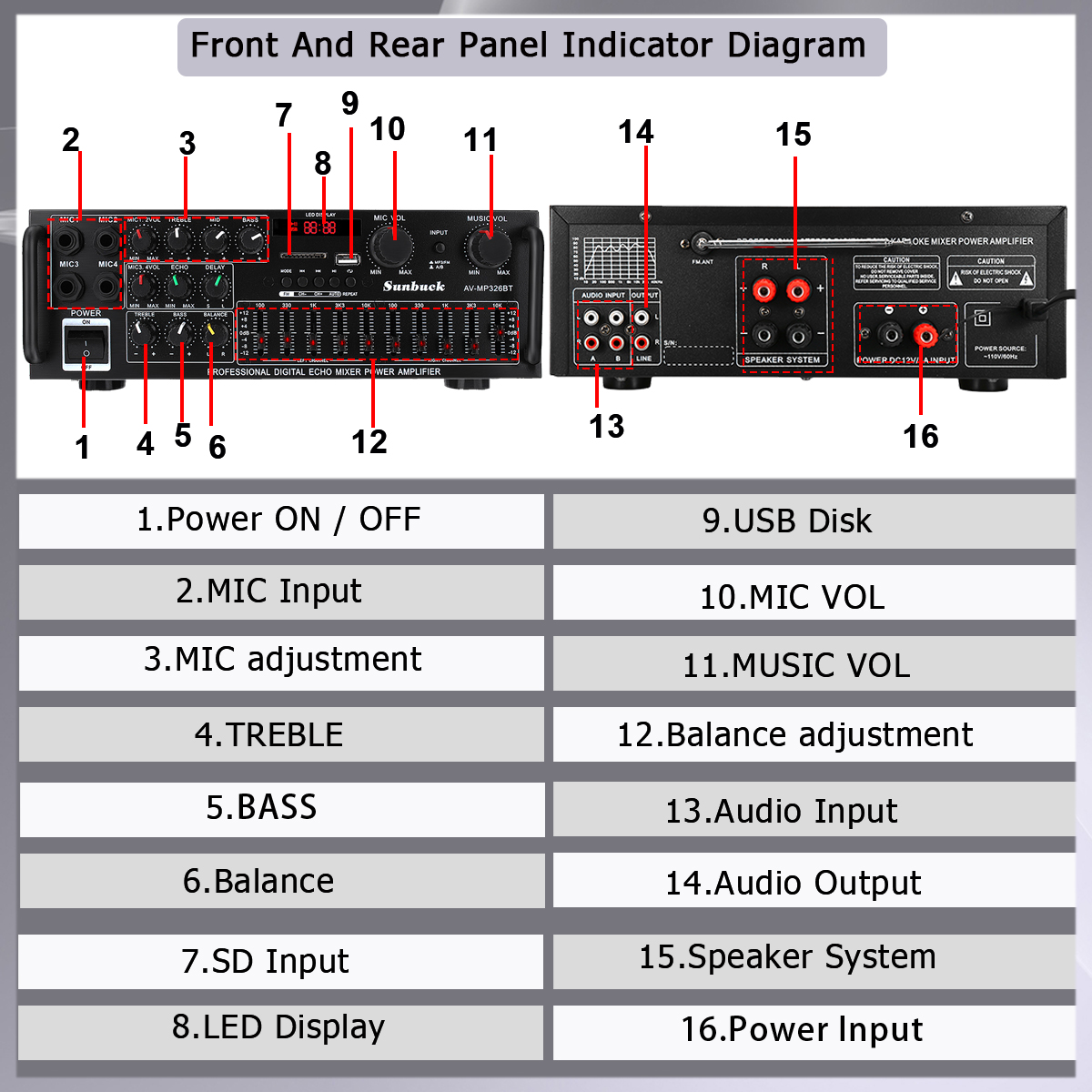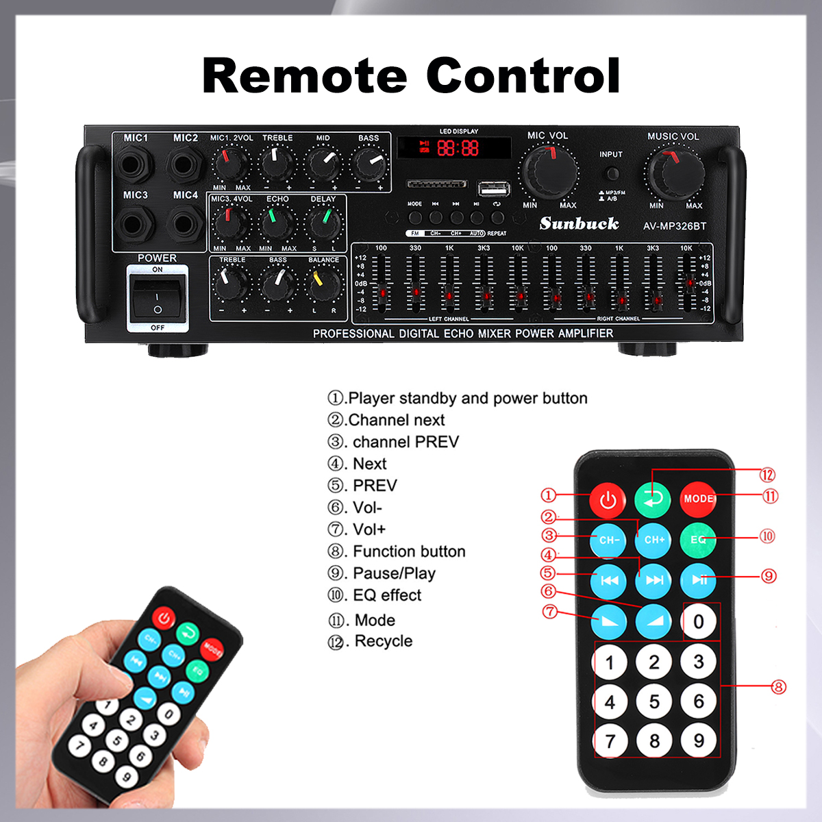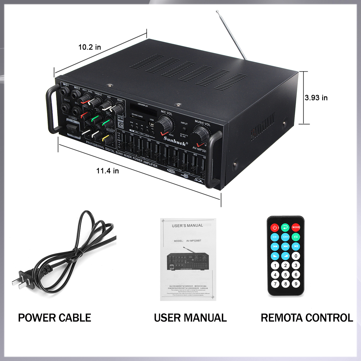2000 Вт 5,0 bluetooth 2-канальный усилитель мощности аудио HiFi 326BT 12 В/220 В AV Amp динамик с дистанционным управлением 4 микро для автомобиля и дома