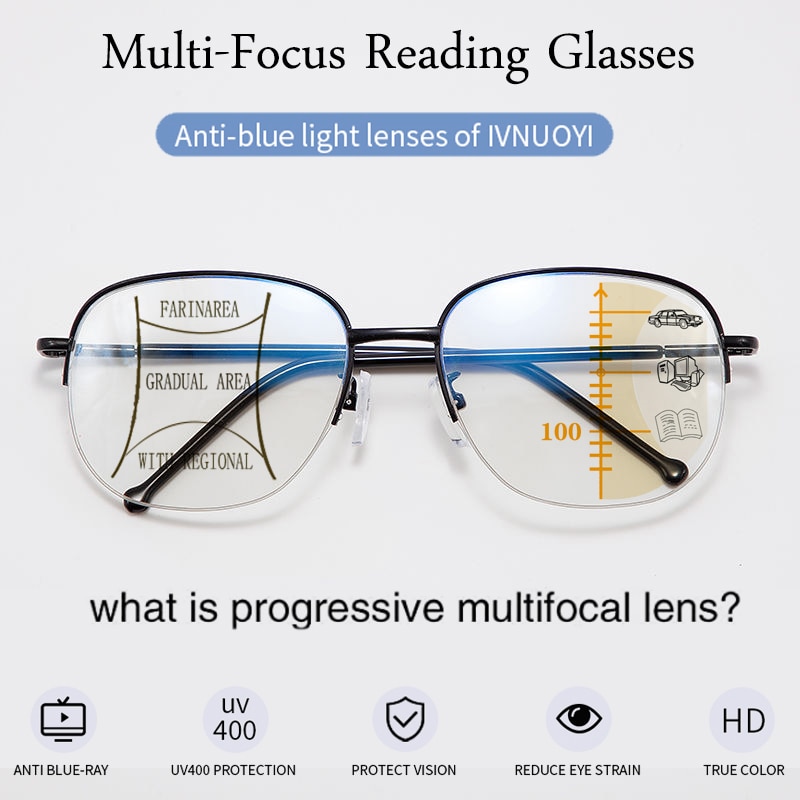 2021 металлические титановые многофокальные очки для чтения для мужчин и женщин, прогрессивные очки с защитой от синего излучения и УФ-лучей, очки для дальнозоркости с полуободковой оправой