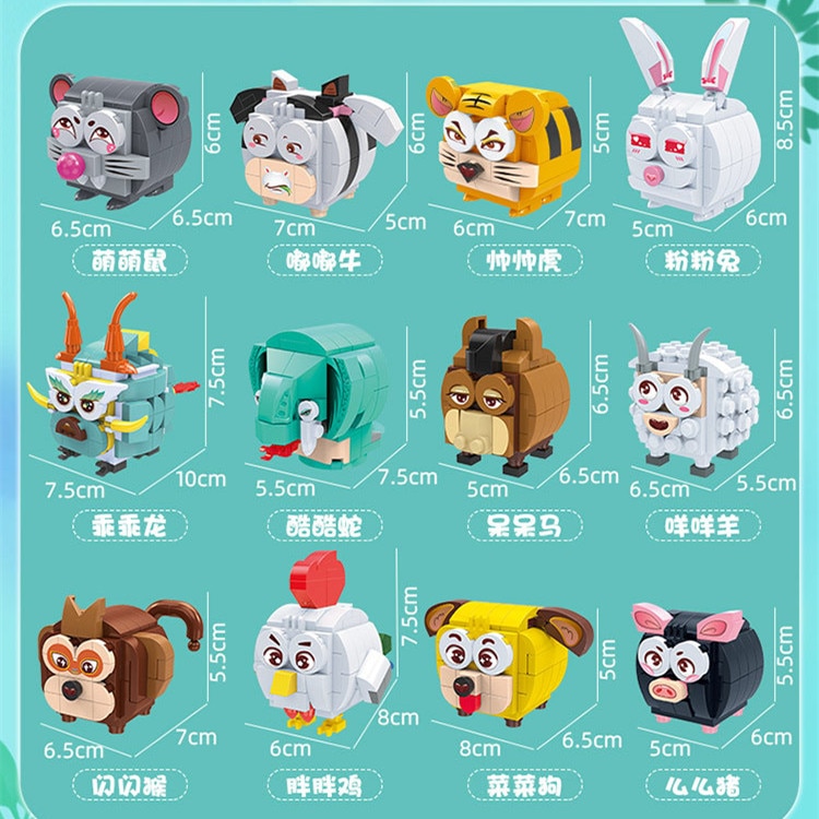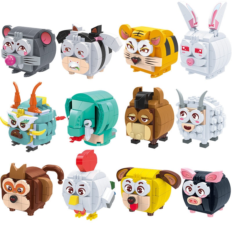 2022 г., креативность в городе, Двенадцать китайских знаков зодиака, милые животные, обезьяна, змея, овечка, свинья, строительные блоки, кирпичи, детские игрушки