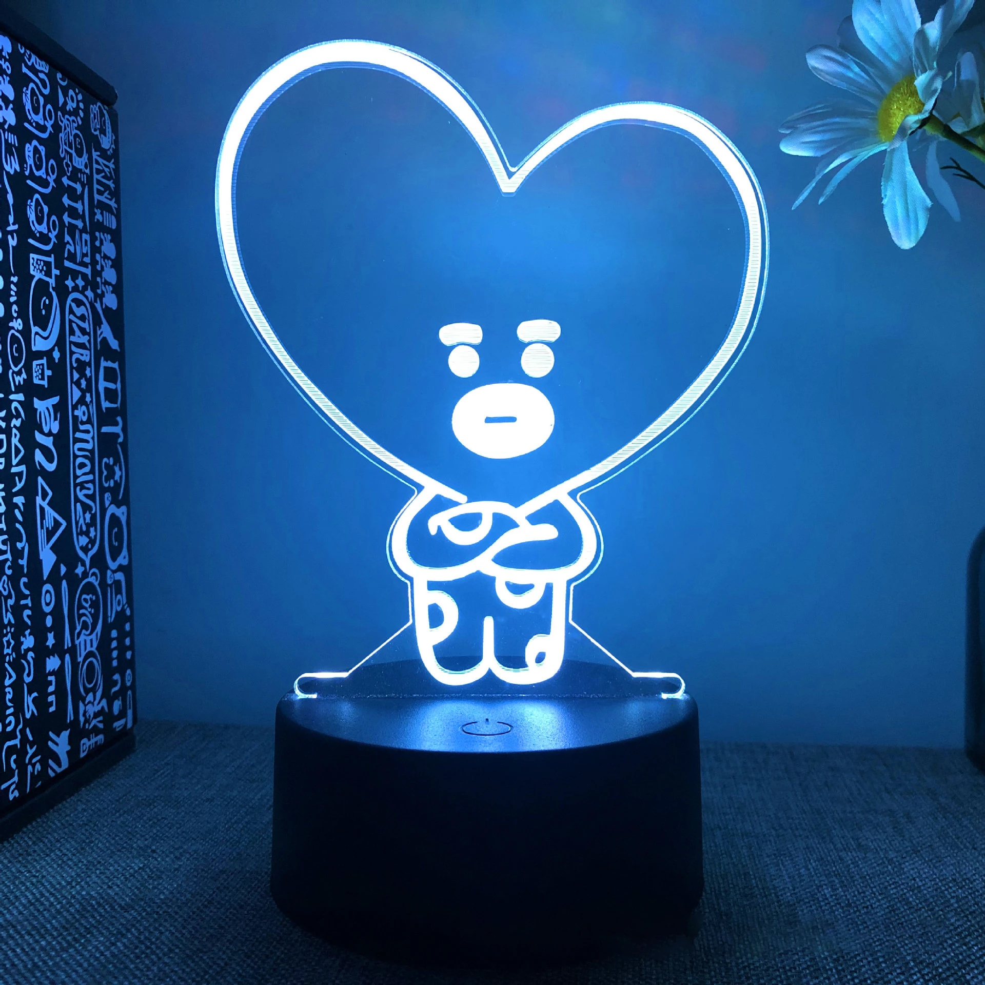 2022 Новый кавайный 18 см * 14 см Bt21 Usb 16 цветов 3D Акриловый милый мультяшный пульт дистанционного управления сенсорный ночник креативная прикроватная лампа