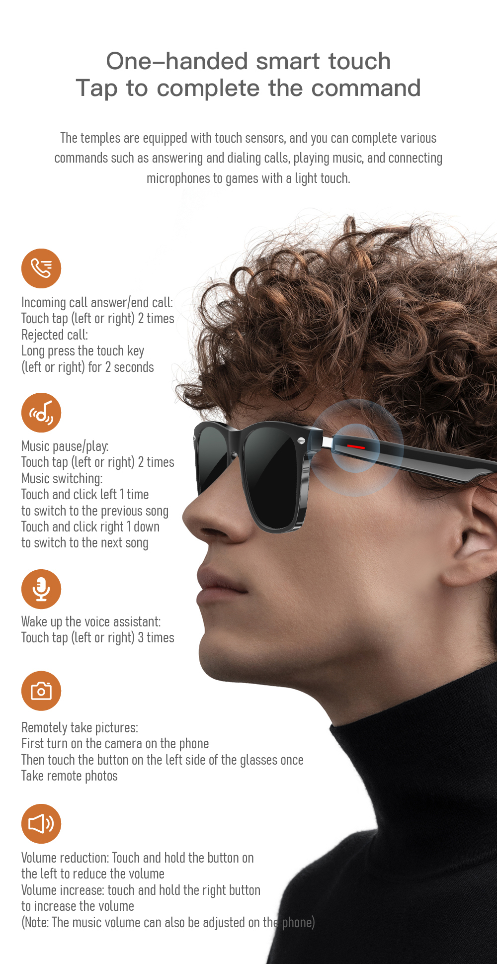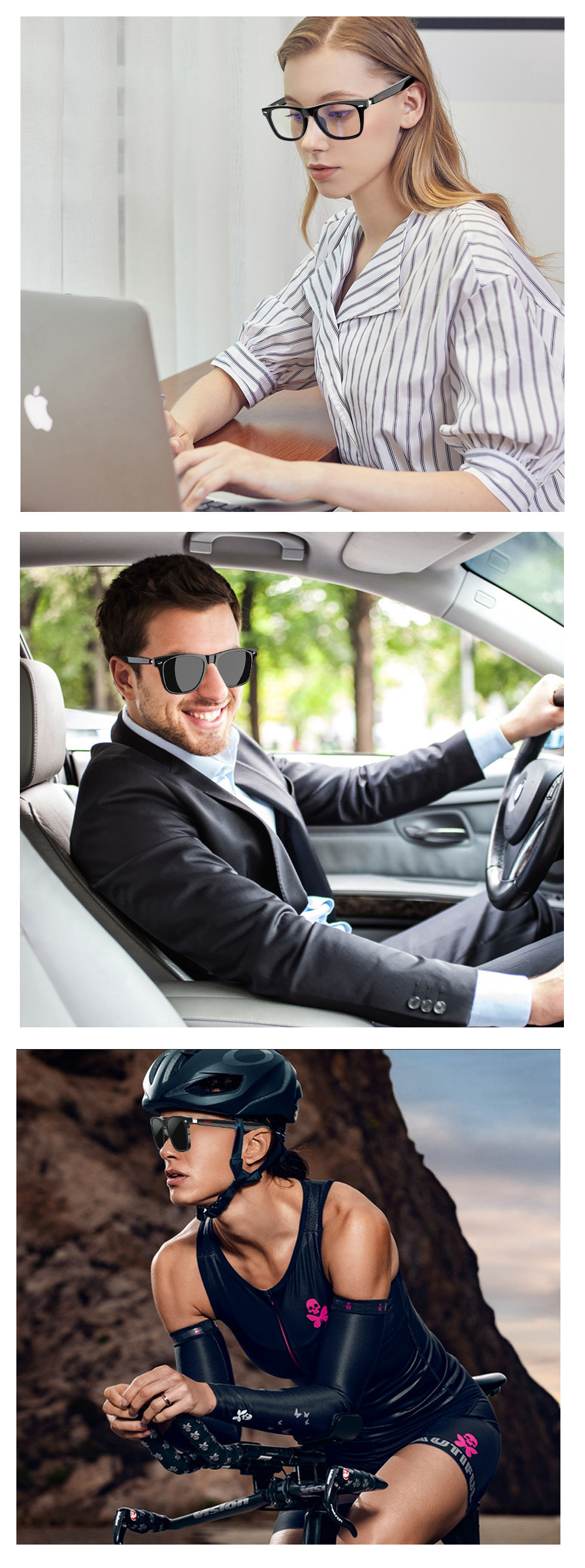1. Bluetooth Glasses Speaker: The dynamic driver, unique sound cavity design avoid hearing obstacles. The open-ear design helps you always pay attention to your surroundings, avoid danger and enjoy music.