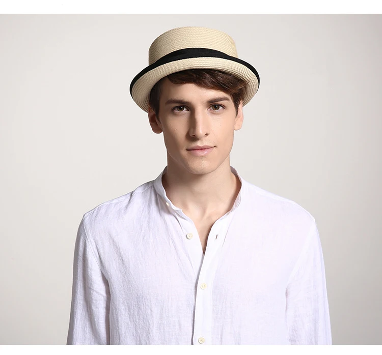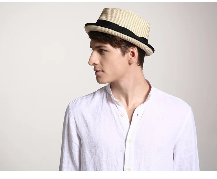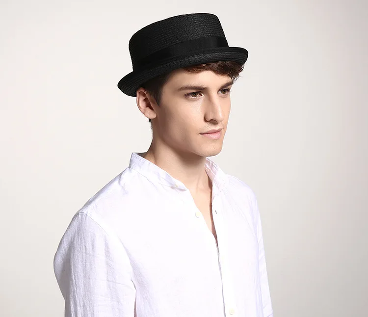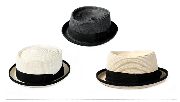 Винтажная соломенная шляпа с закатанными полями, мужская шляпа из свиной пирог, шляпа Fedora для мужчин, джентльмены, роскошные джазовые ленты, Панамы, уличные солнцезащитные кепки