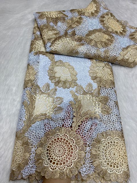 2023 белая высококачественная африканская кружевная ткань с камнями розничная продажа 5 ярдов Сетчатое кружево для нигерийского шитья Африканское большое свадебное платье