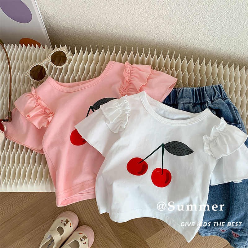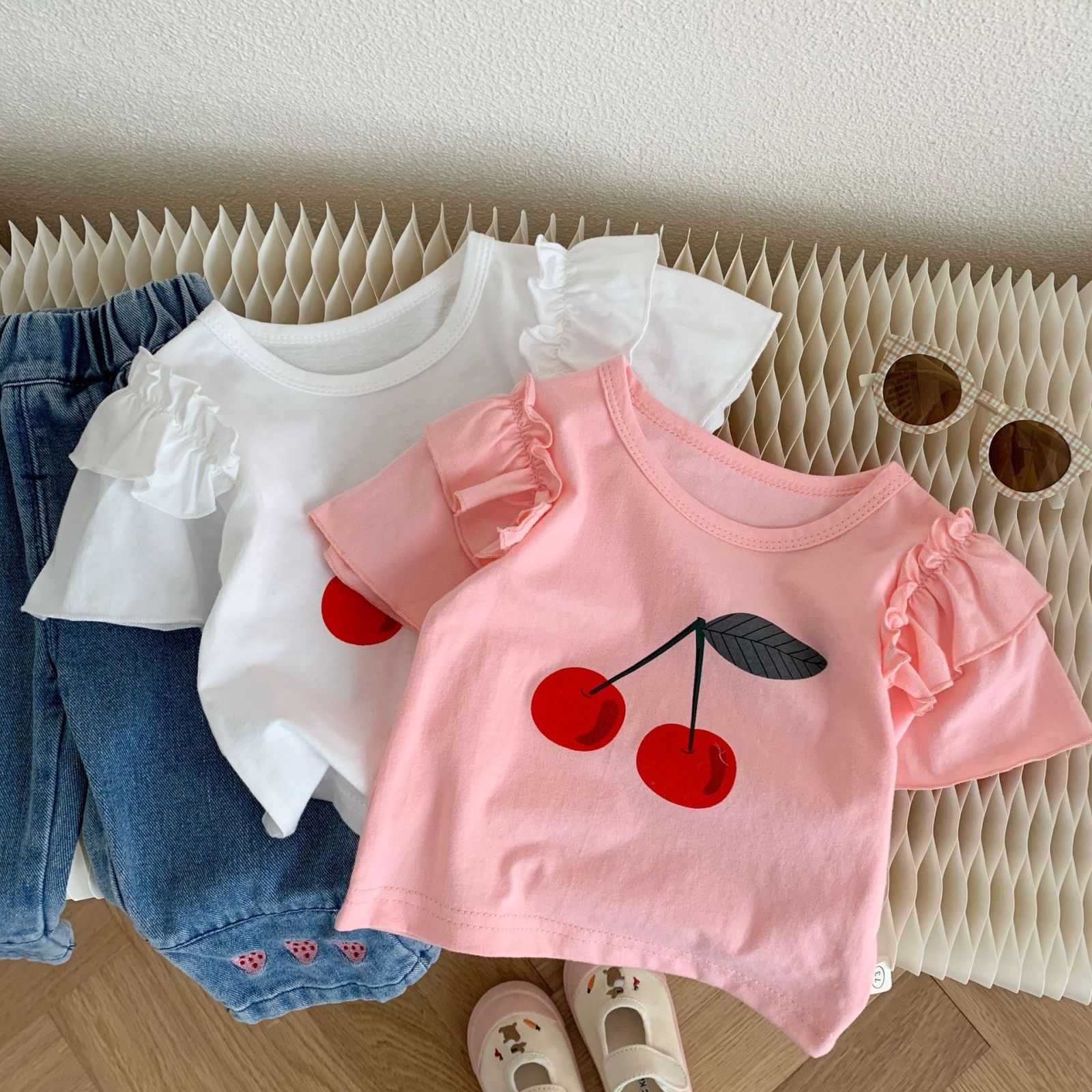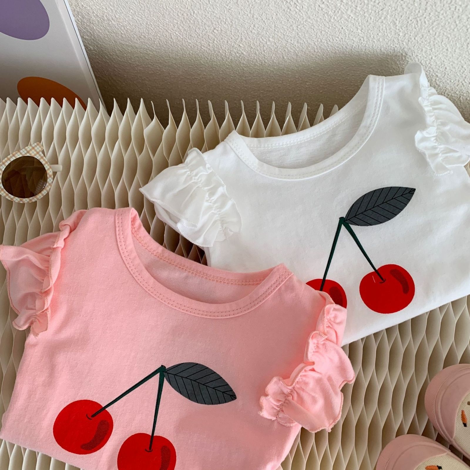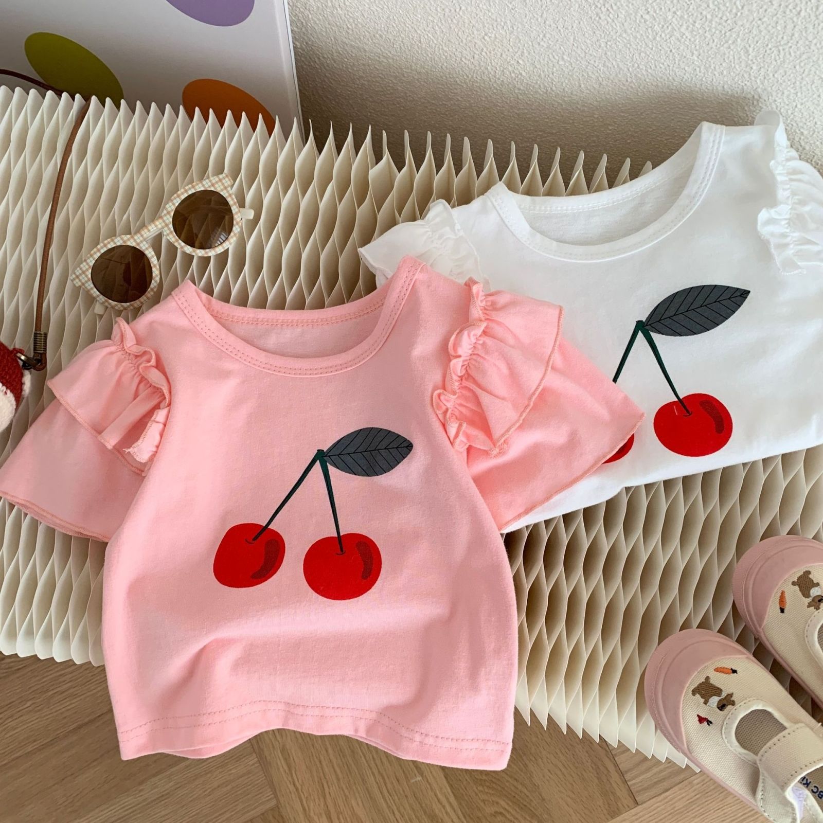 2023 детские яркие милые футболки с вишней, хлопковые футболки, детские топы для девочек на день рождения, детская одежда
