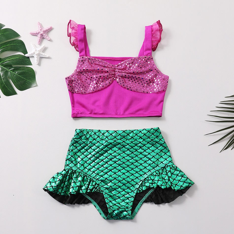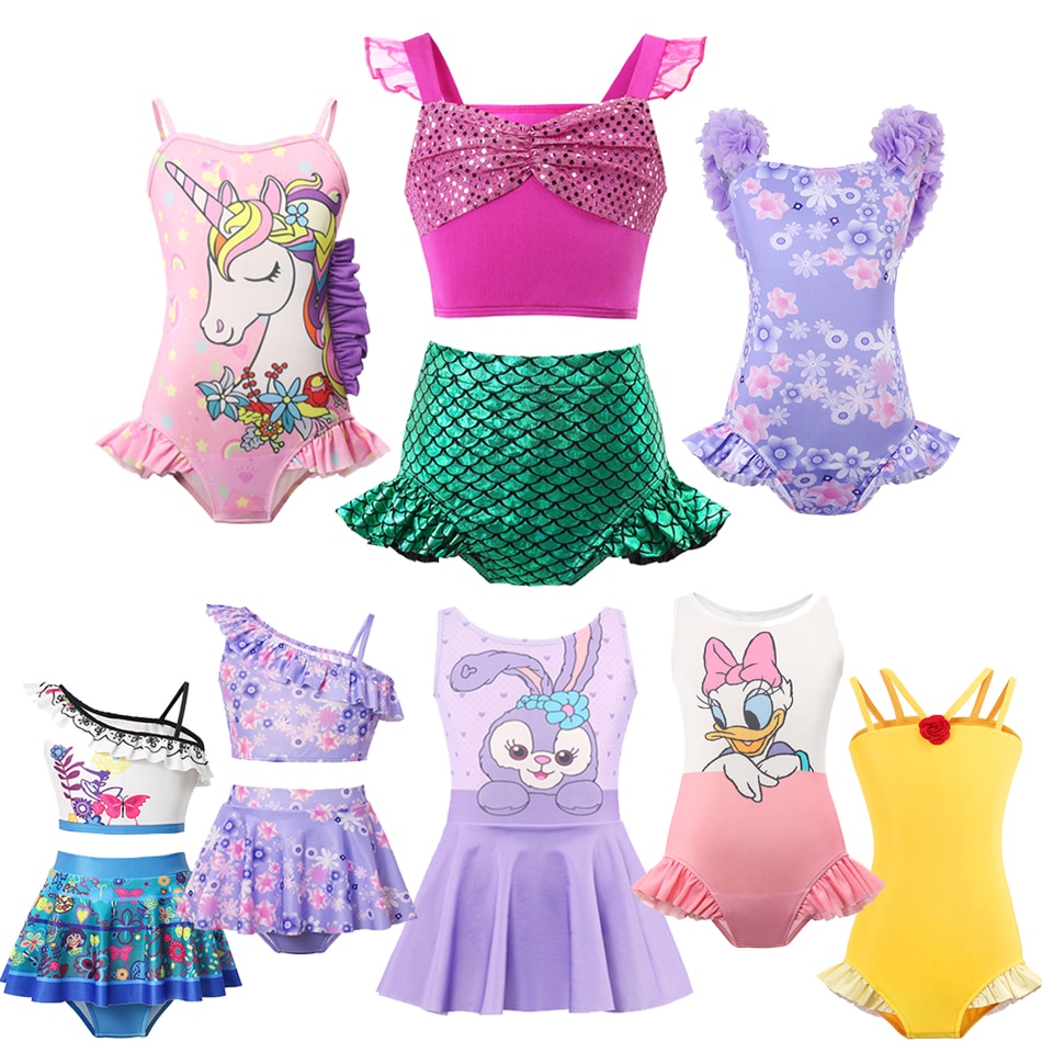 2023 детский купальник для девочек Disney детская пляжная одежда для косплея ElsaPrincess купальники Русалка Ариэль на бретелях бикини купальный костюм