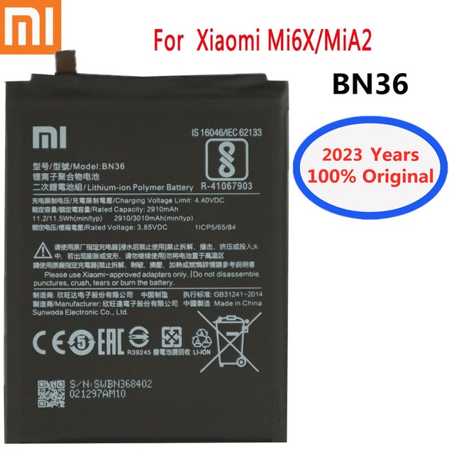 2023 год, 3000 мАч BN36 100% Оригинальный аккумулятор для Xiaomi Mi 6X A2 Mi6X MiA2, аккумулятор для телефона
