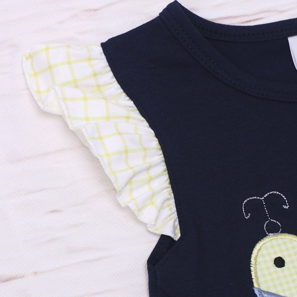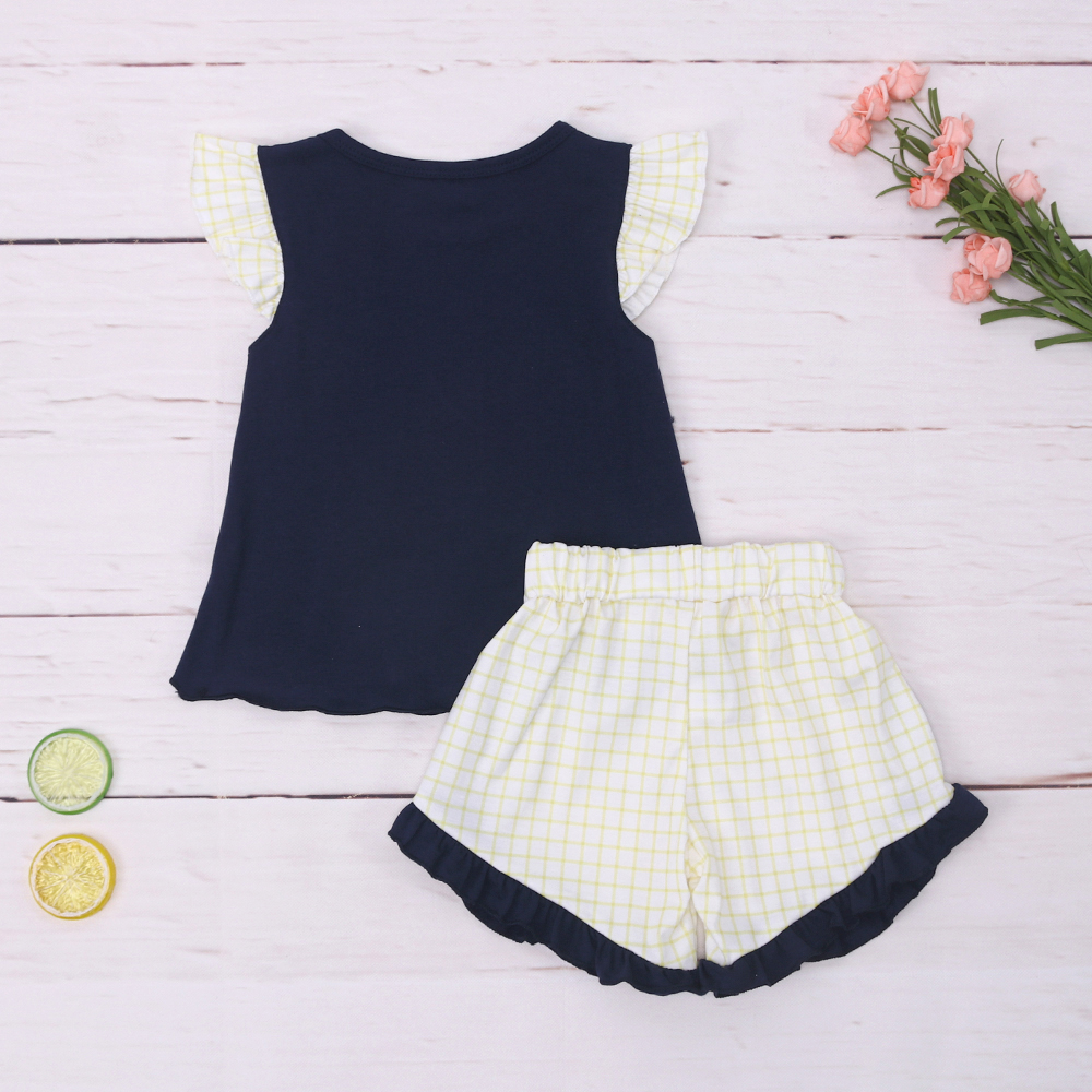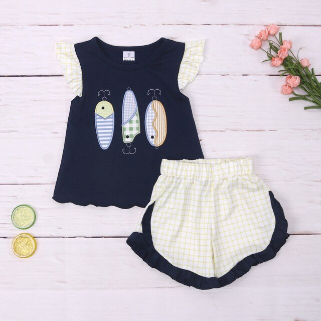 2023 Комплект одежды для маленьких девочек Боди с вышивкой рыбой Костюм с желтыми решетками Детская одежда Детская Одежда для девочек От 1 до 8 лет Bebes Outits