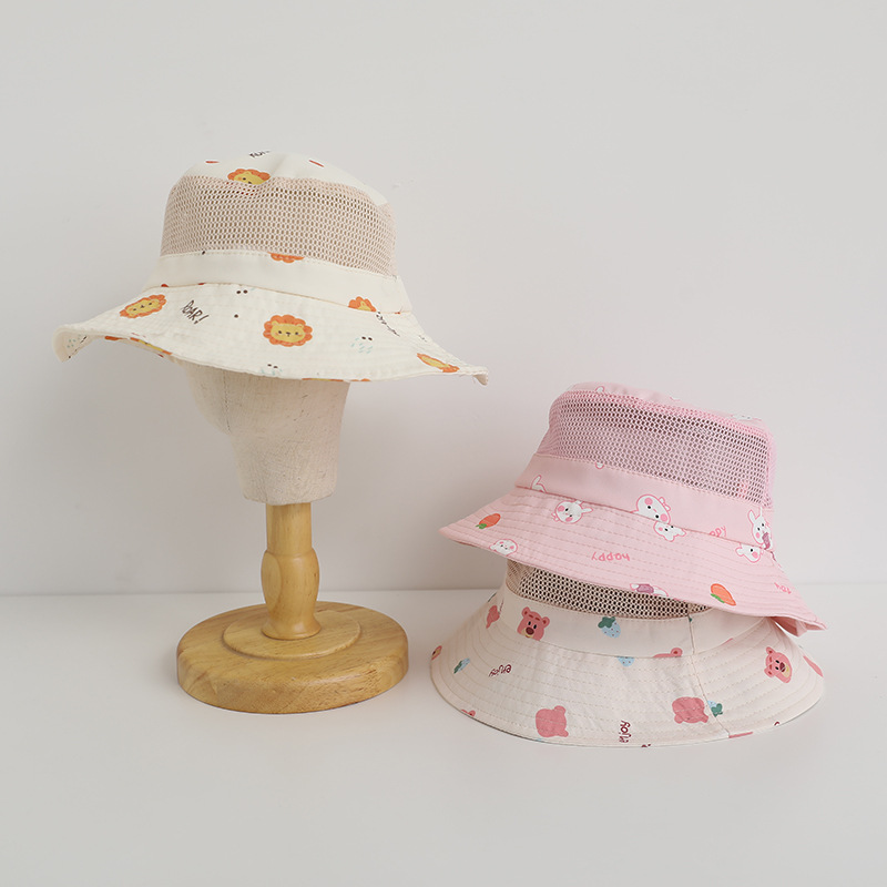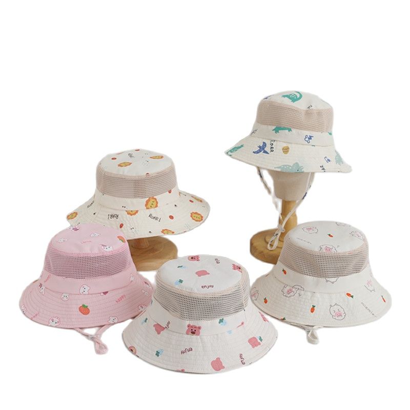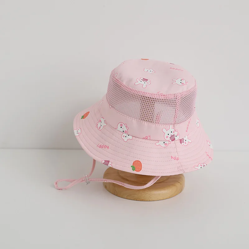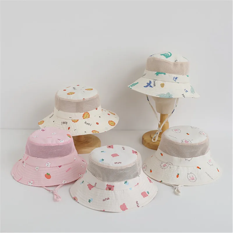 2023 летние детские Мультяшные хлопковые Панамы, Детская уличная Солнцезащитная шляпа с УФ-защитой, розовая сетчатая рыболовная Кепка для мальчиков и девочек