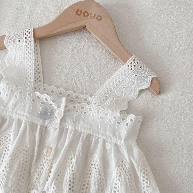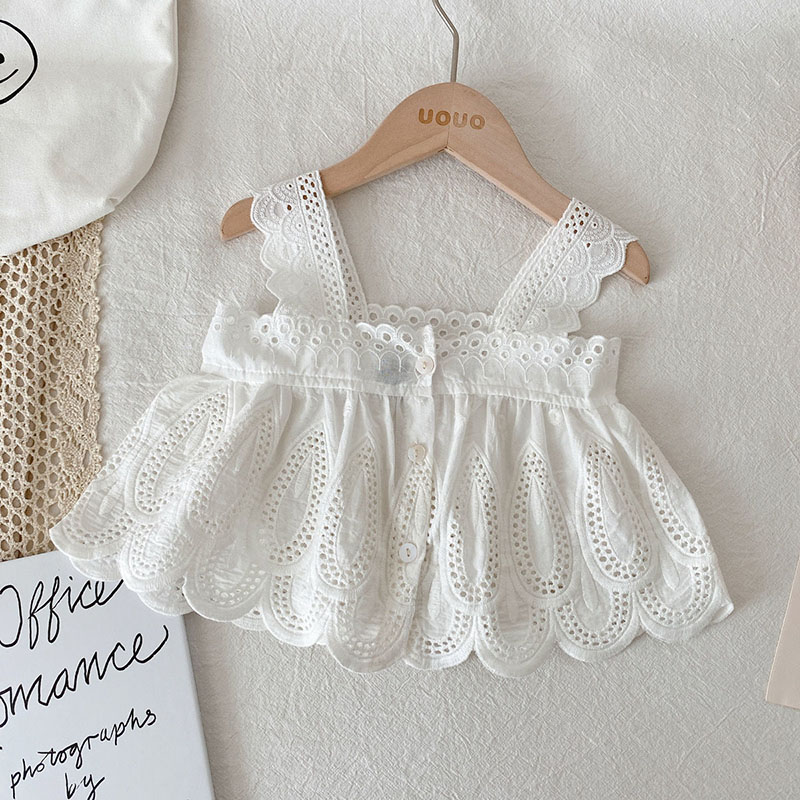 2023 летняя детская одежда, комплекты одежды для девочек, повседневные белые подтяжки с кружевными краями для девочек + фото