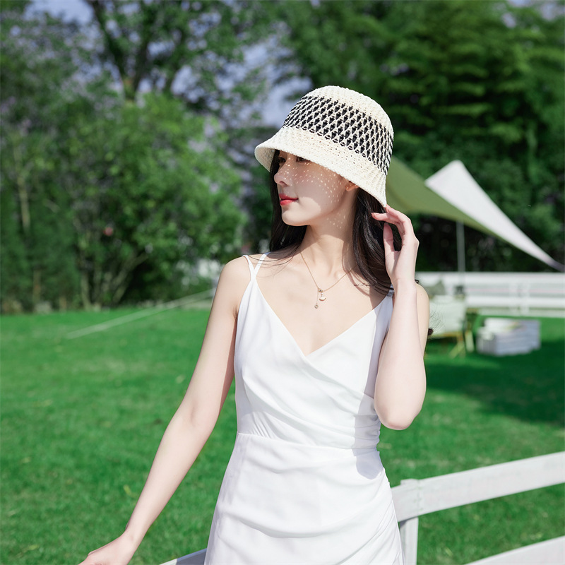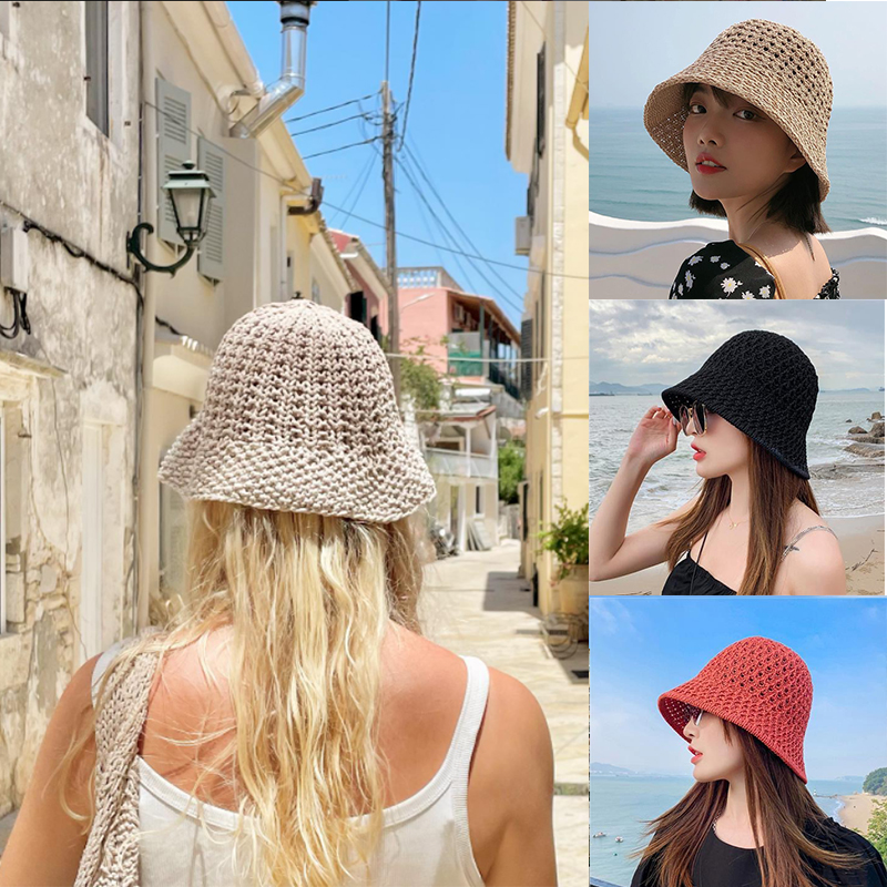 2023 летняя Солнцезащитная шляпа, женская красная сетчатая Панама в Корейском стиле ins, шляпа с вырезами для рыбалки, уличная вязаная Солнцезащитная шляпа