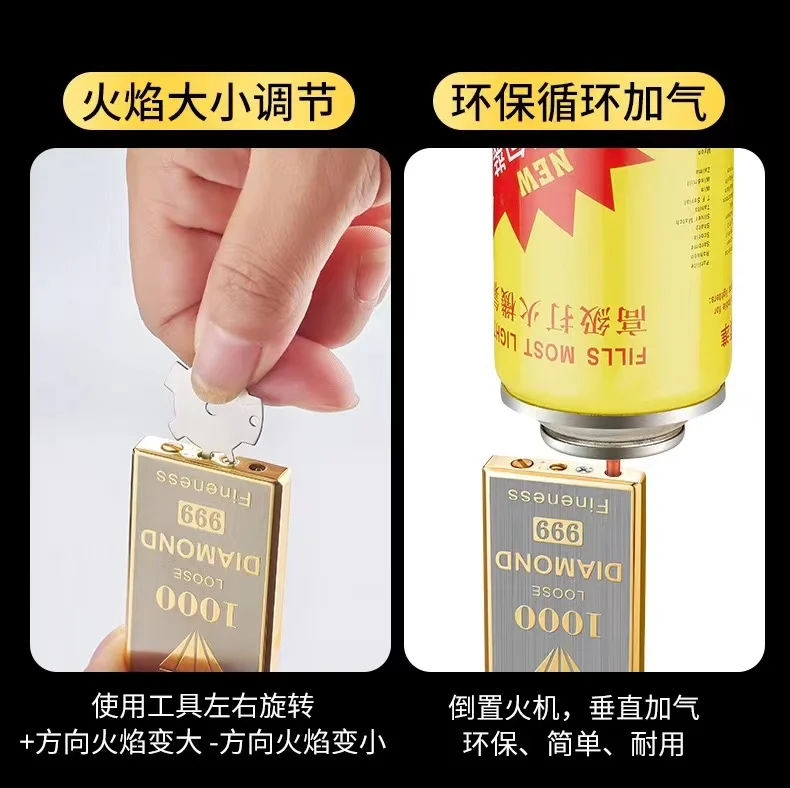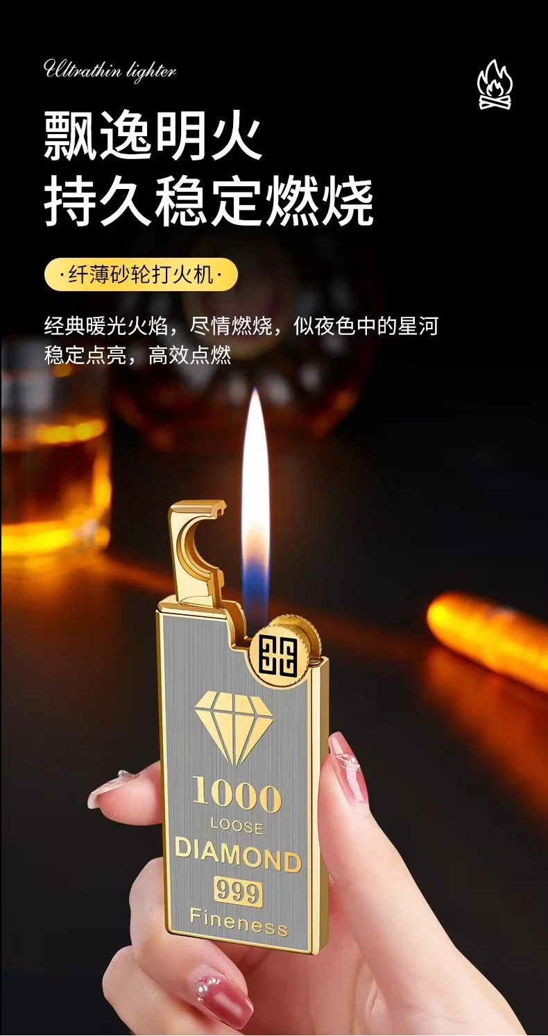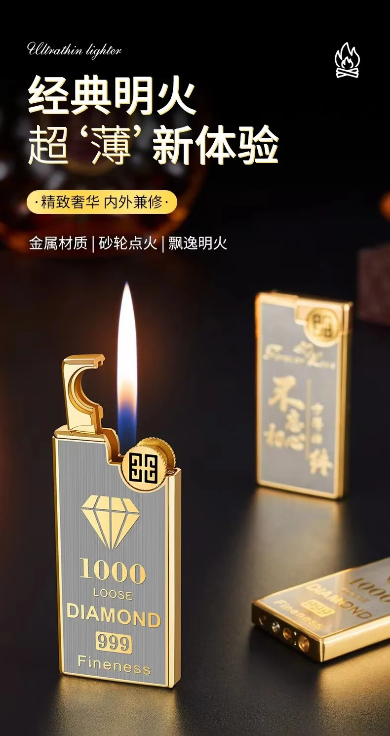 2023 металлическая тонкая надувная зажигалка, обновленная версия, зеркальная Бутановая газовая зажигалка с открытым пламенем, гаджет для курения для мужчин