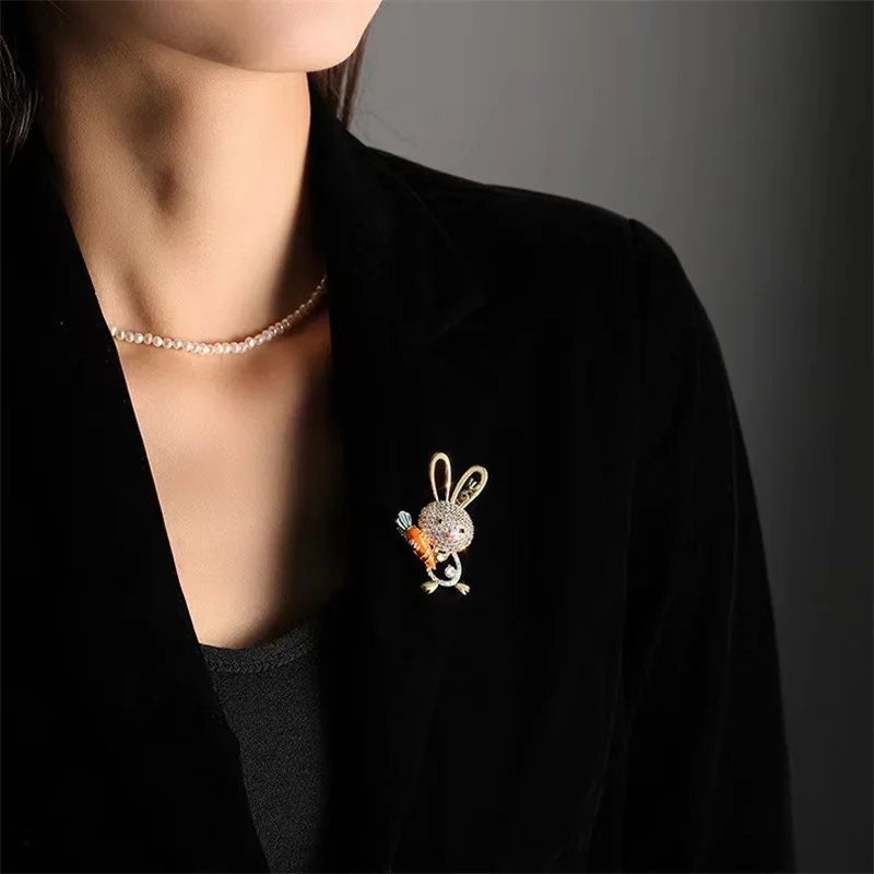 2023 New Cute Rabbit Brooches for Women Cartoon Animal Bunny Lapel Pins Enamel Badge Bag Hat Deco Corsage Cardigan Jewelry Gifts