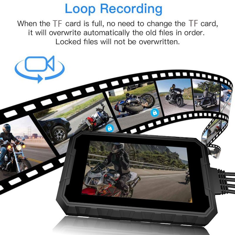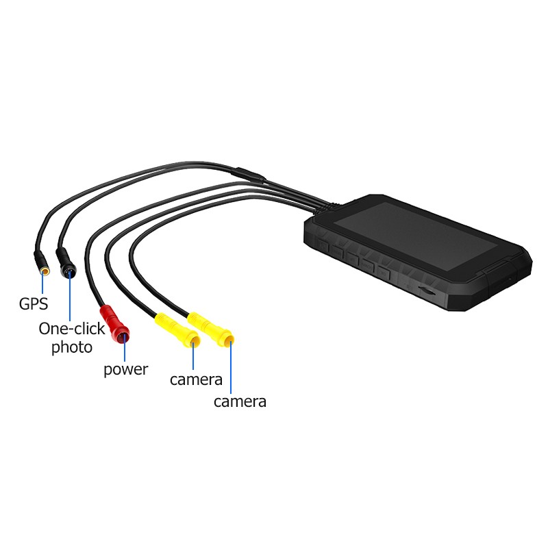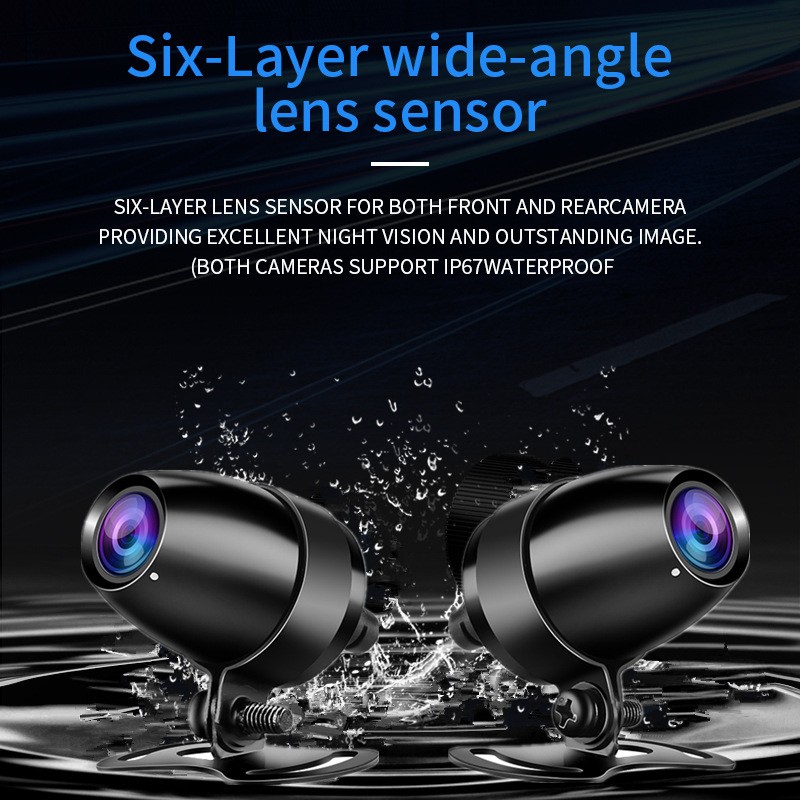 1. Регистратор мотоцикла оснащен фронтальной и задней двумя камерами 1080P, которые могут записывать видео высокого качества