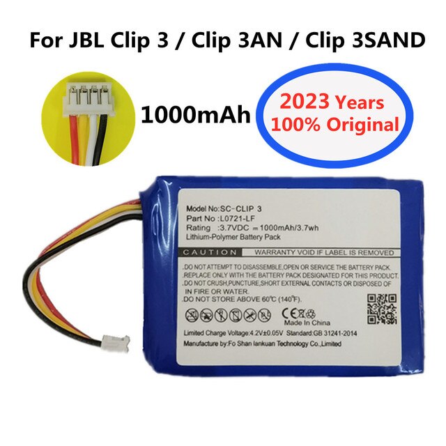 2023 оригинальный сменный аккумулятор для динамика 1000 мАч для JBL Clip 3, зажим 3 дюйма, зажим 3 дюйма, громкий динамик с литиевой батареей