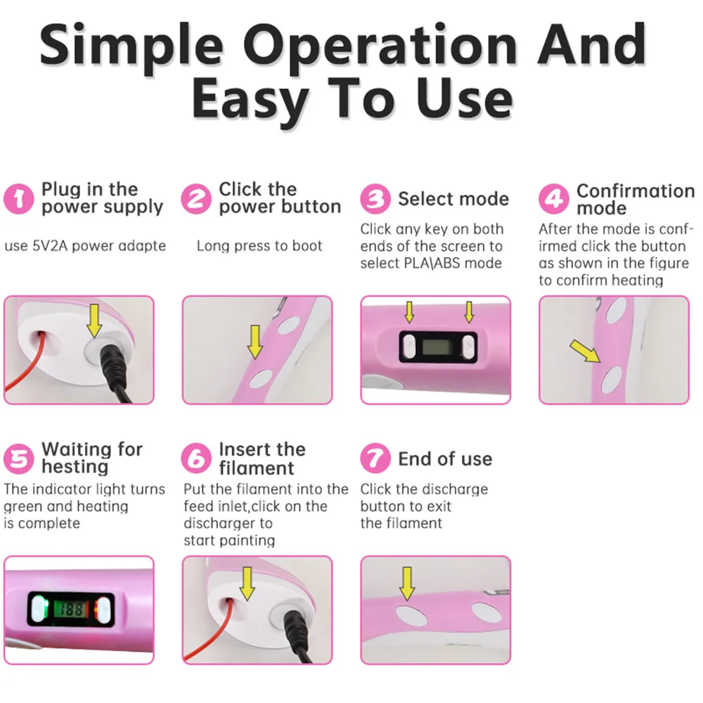 ❥Temperature Adjustment - With display screen, LED display temperature adjustment. The temperature can be adjusted at any time. Feel free to exchange materials, feel free to switch,follow the heart. Adjustable printed consumable speed, the internal temperature of the printed pen can also be adjusted. control temperature can control the cooling rate of material consumables, better shape 3D stereoscopic works.