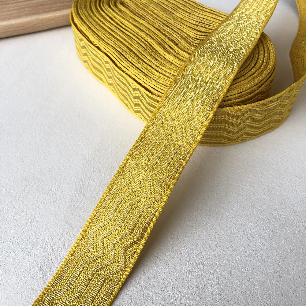 20Yards/Lots Woven Jacquard Ribbon Width About 13mm-28mm Gold Stripe Wave Accessories For Clothing YH-8000