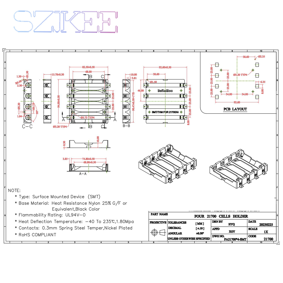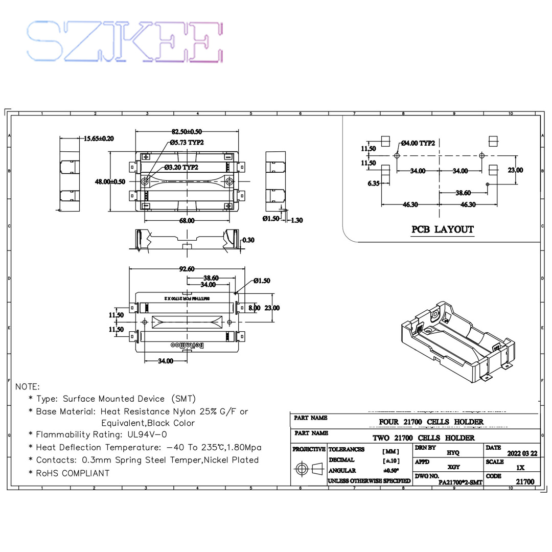 21700 держатель аккумулятора SMT SMD, контейнер для аккумуляторов 21700, ящик для хранения 1x2x3x4, 21700 элемент аккумулятора 21700 smd 21700 smt