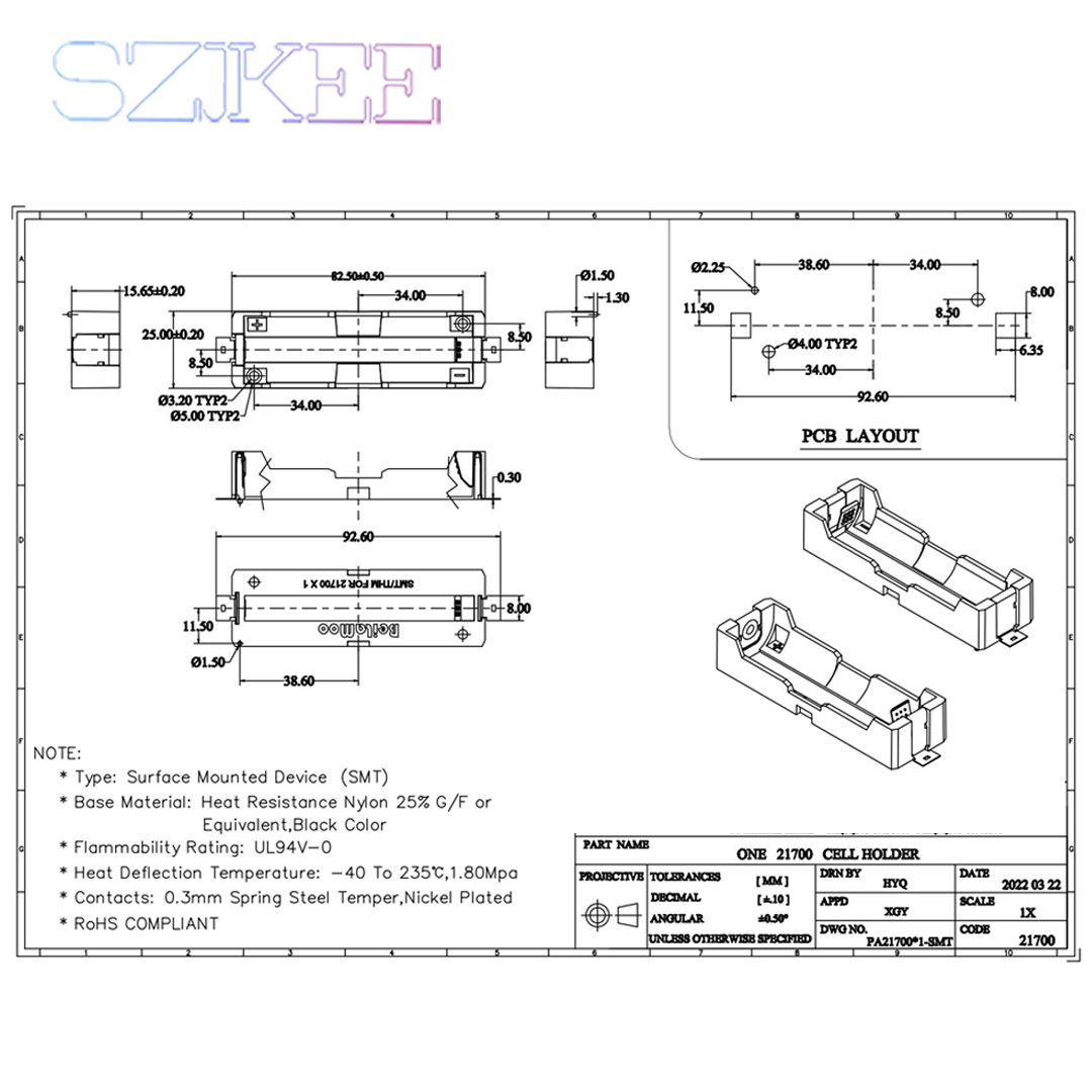 <span class="SnowProductCharacteristics_SnowProductCharacteristicsItem__titleContent__534v9">Номер модели</span> 21700 Battery Holder SMT
