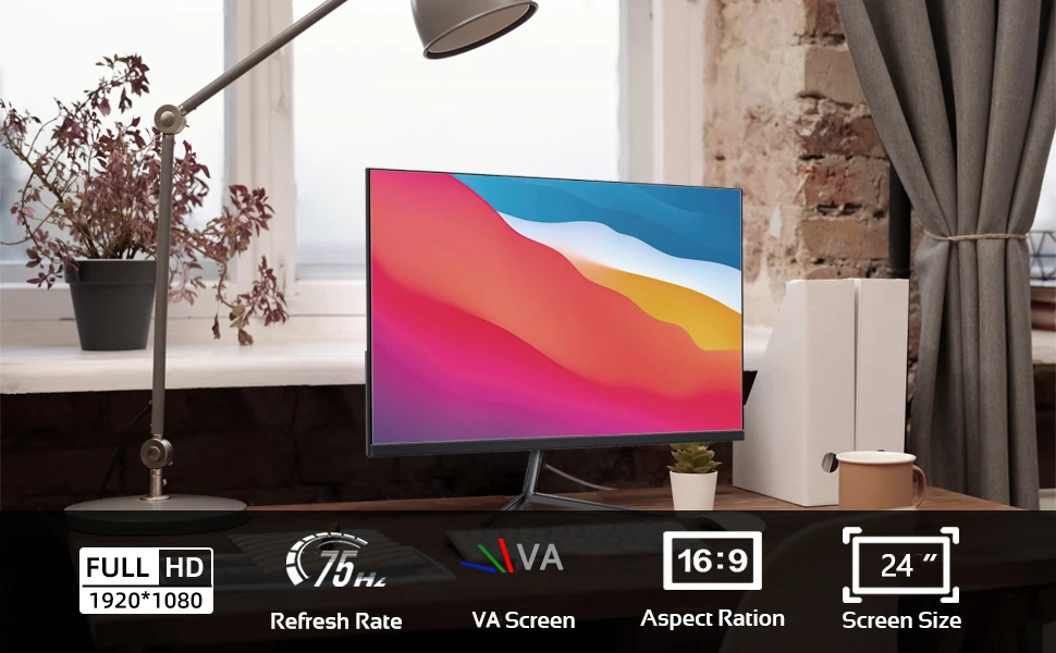 24 - дюймовый дисплей использует сверхтонкий дизайн, внешний вид моды, подходит для любого пространства. настенный настенный рисунок VESA 75 * 75 позволяет свободно выбирать лучшее место для просмотра дисплея, устранить путаницу кабелей и сэкономить драгоценное пространство для игр и рабочих станций.