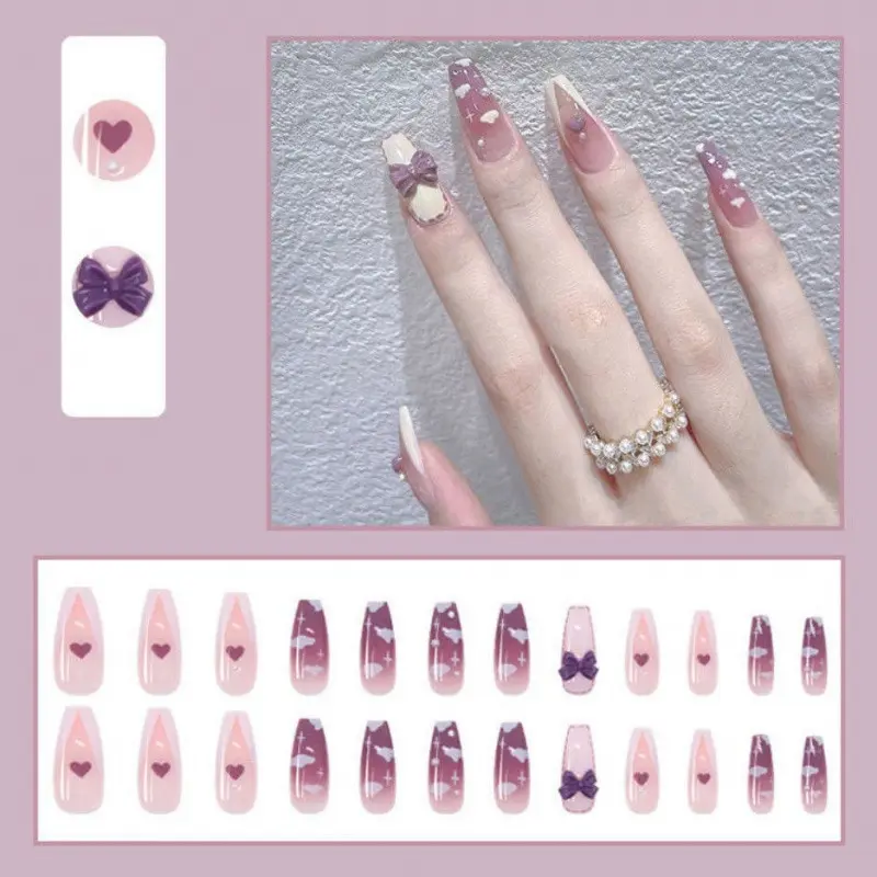 24 шт. носимые розовые накладные ногти с клеем накладные ногти дизайн бабочки милые девушки накладные ногти с носками инструменты