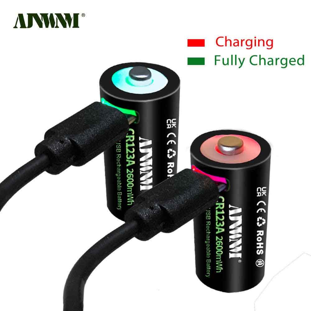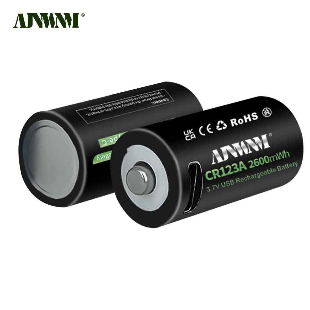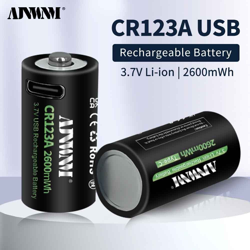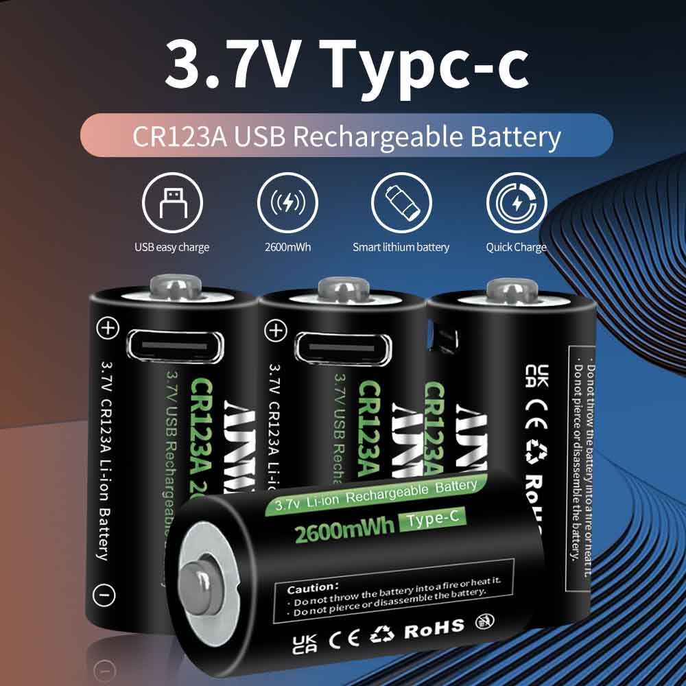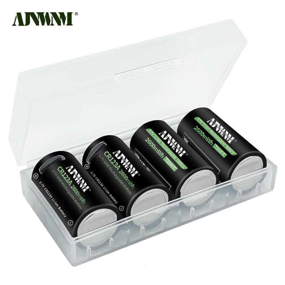 2600mWh Батарейка AJNWNM CR123A / CR123 / RCR123 USB Lithium 3.7V 4шт +кейс и кабель type-c USB для батареек