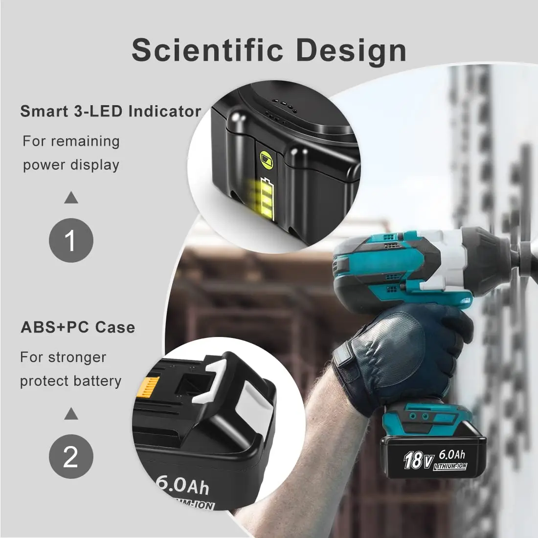 3,0/5,5/6,0/9AH Аккумулятор для Makita 18v BL1830 перезаряжаемая батарея для электроинструмента BL1860B BL186018650 Li-Ion со светодиодной подсветкой
