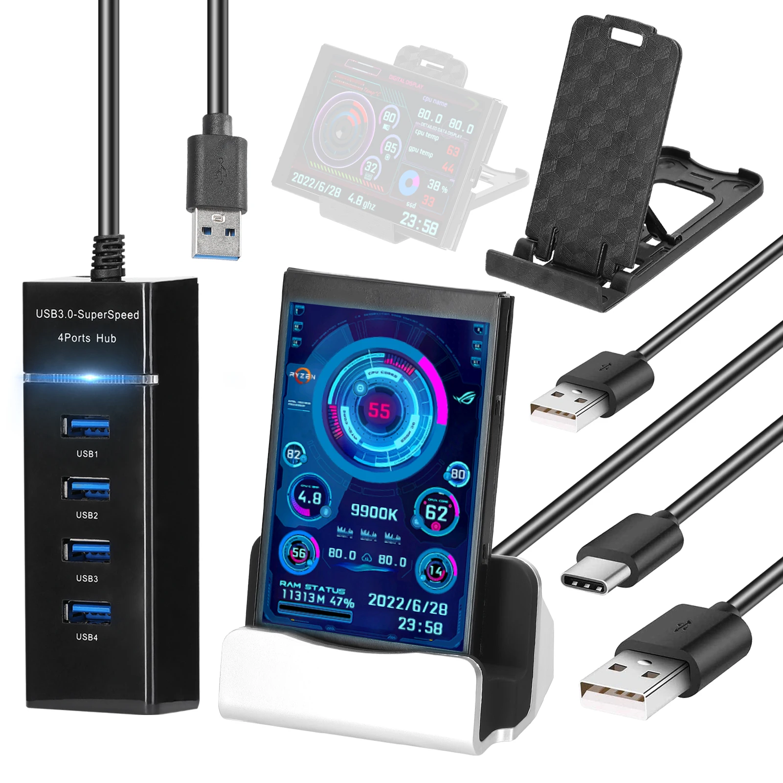 Этот дополнительный экран компьютера может отображать различные данные, такие как процессор, графический процессор, оперативная память, жесткий диск, время и дату. Вам очень удобно подключаться к своим компьютерам. Если вы заинтересованы в этом продукте, приходите и попробуйте!