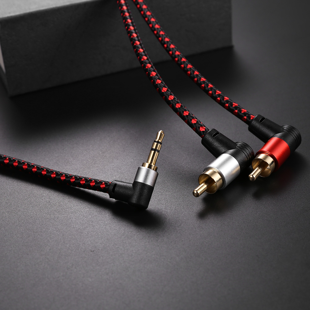 90 градусов 3,5 мм штекер на 2 штекерных кабеля RCA под прямым углом стерео аудио AUX Y разветвитель шнур для усилителя DJ