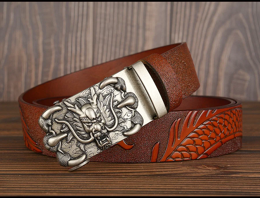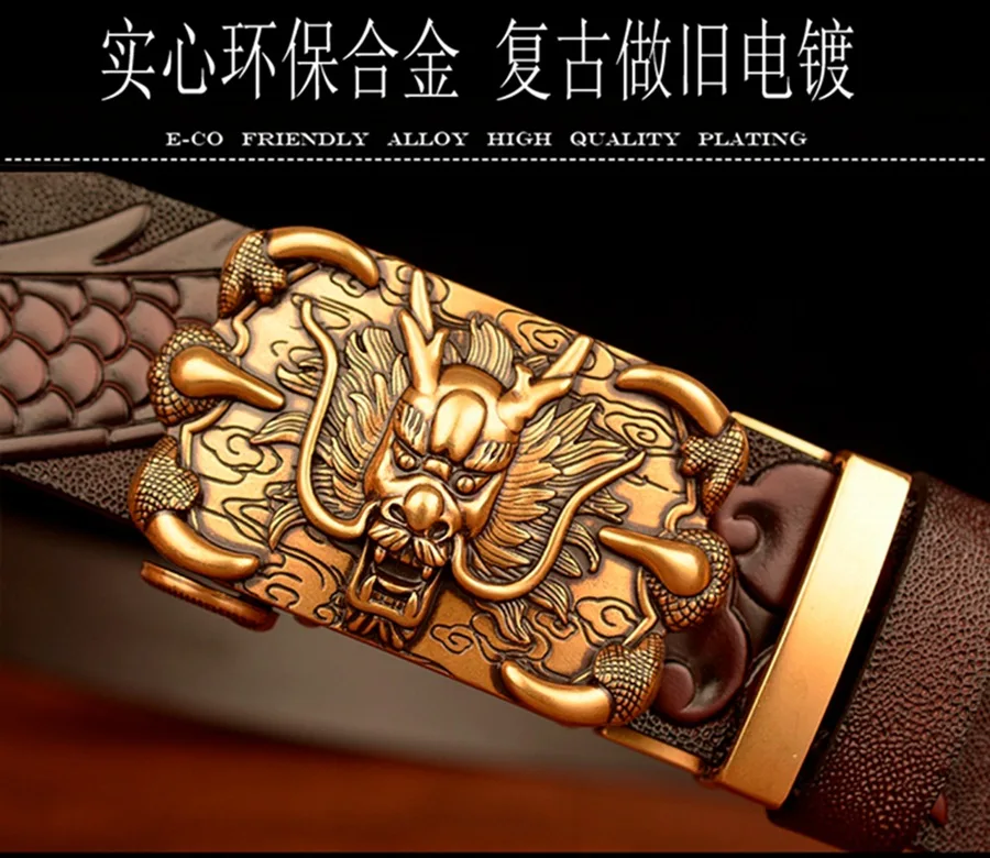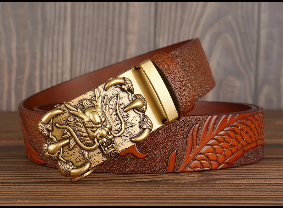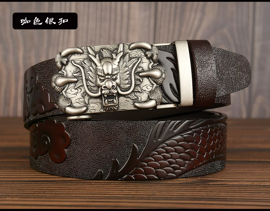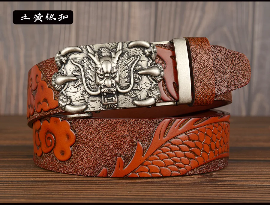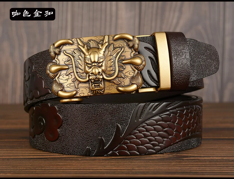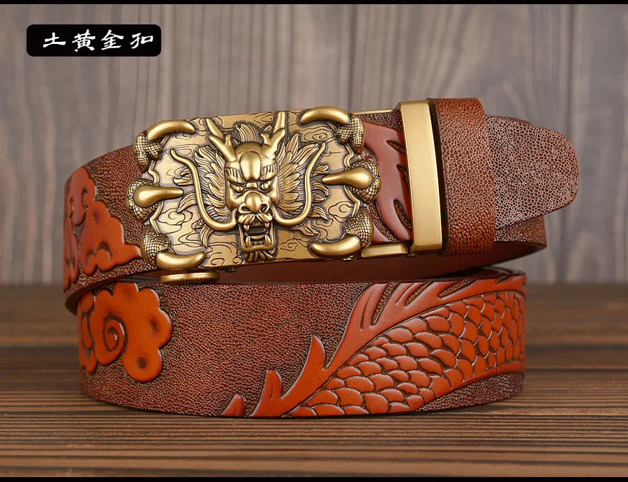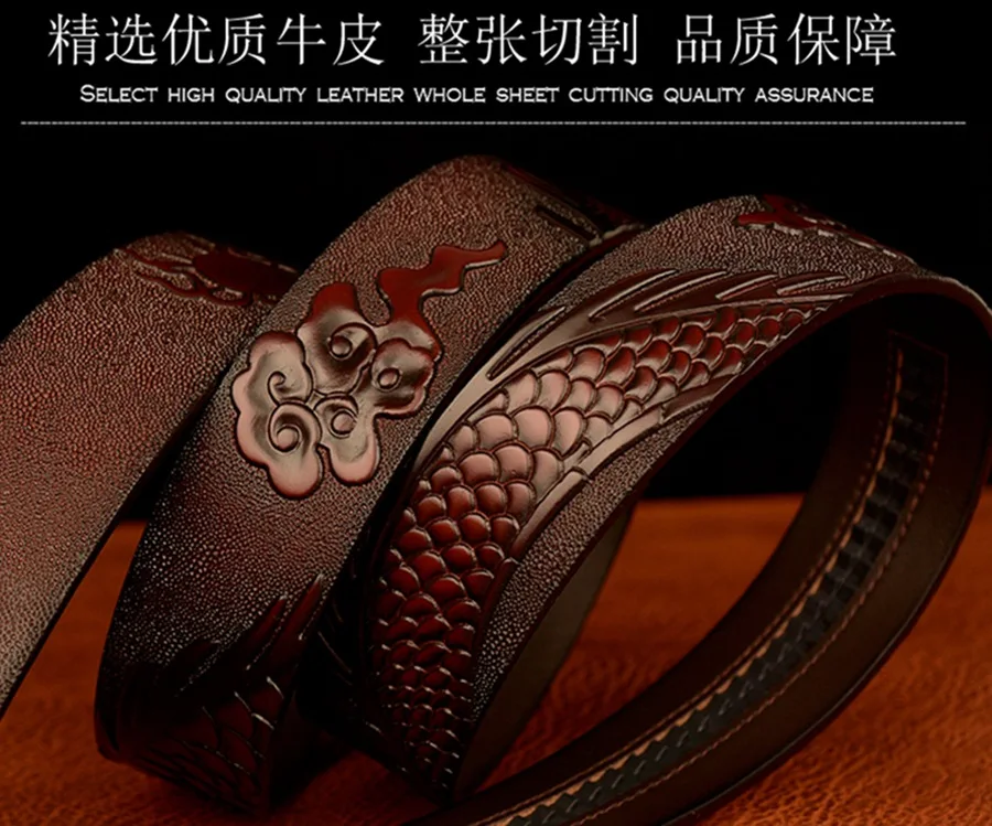3,5 см Ширина Ремень Натуральная Кожа Высокого Качества Воловьей Кожи Мужские Пояса Китайский Дракон Автоматическая Пряжка Ремни Ремни Для Мужчин Подарок