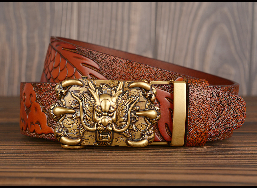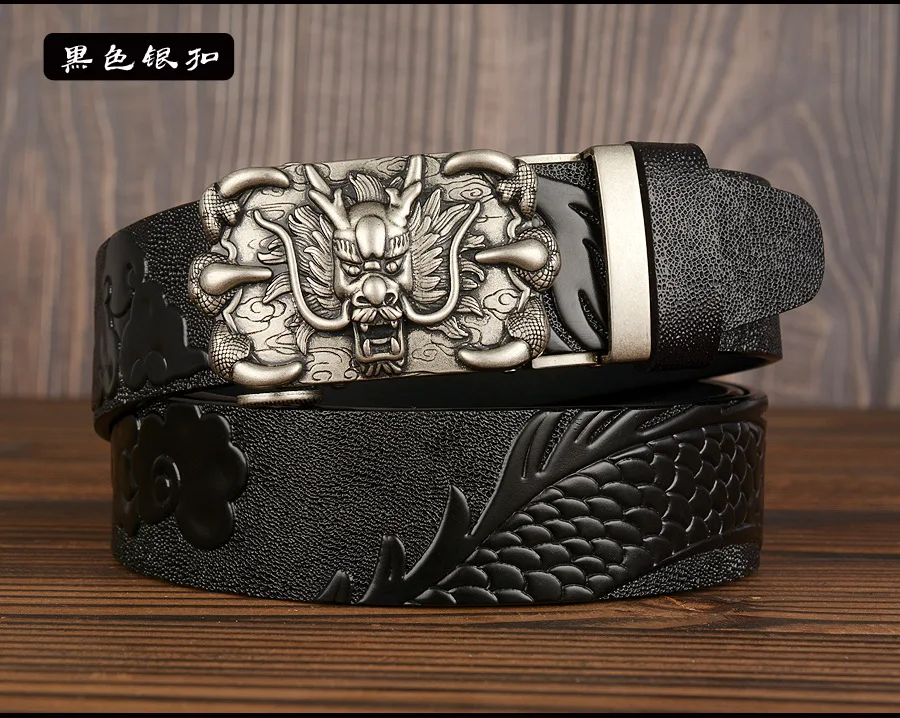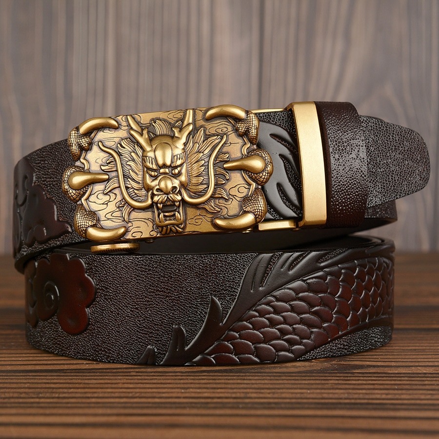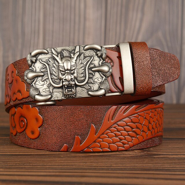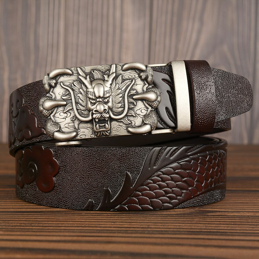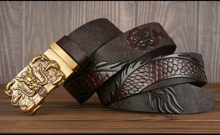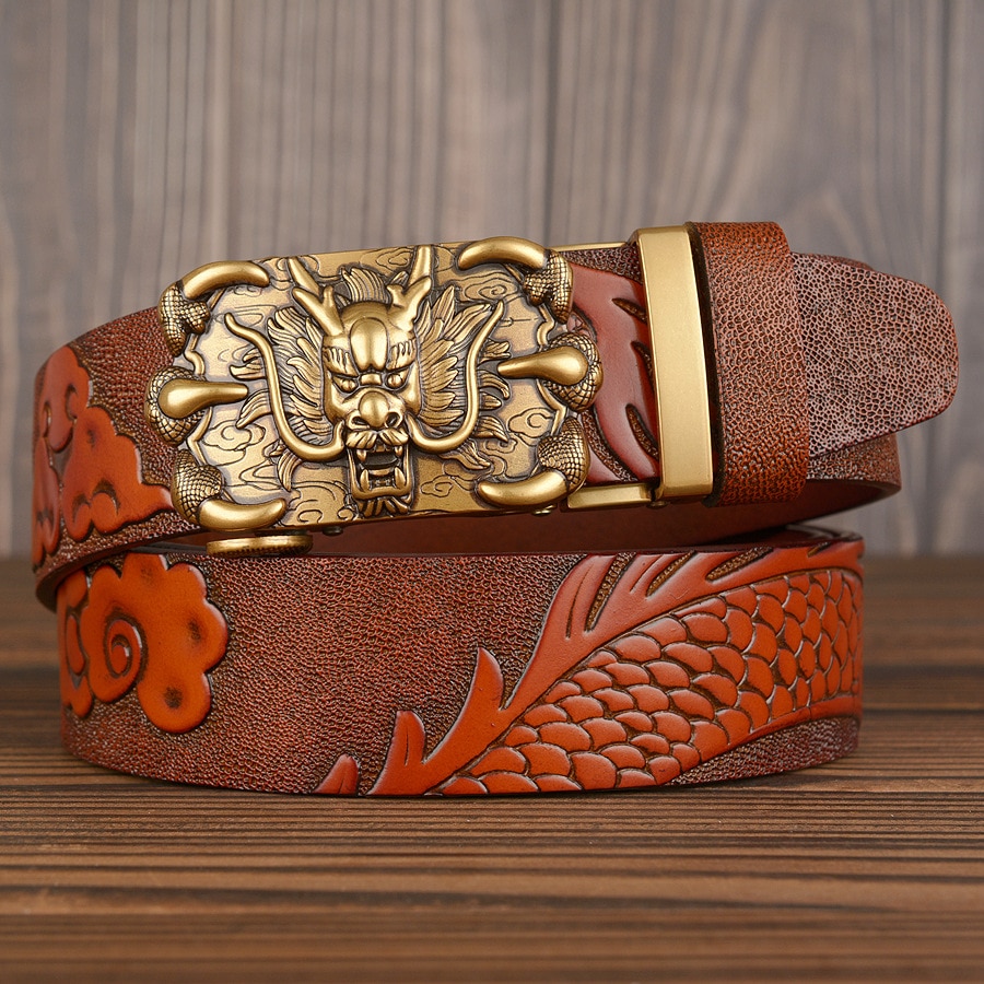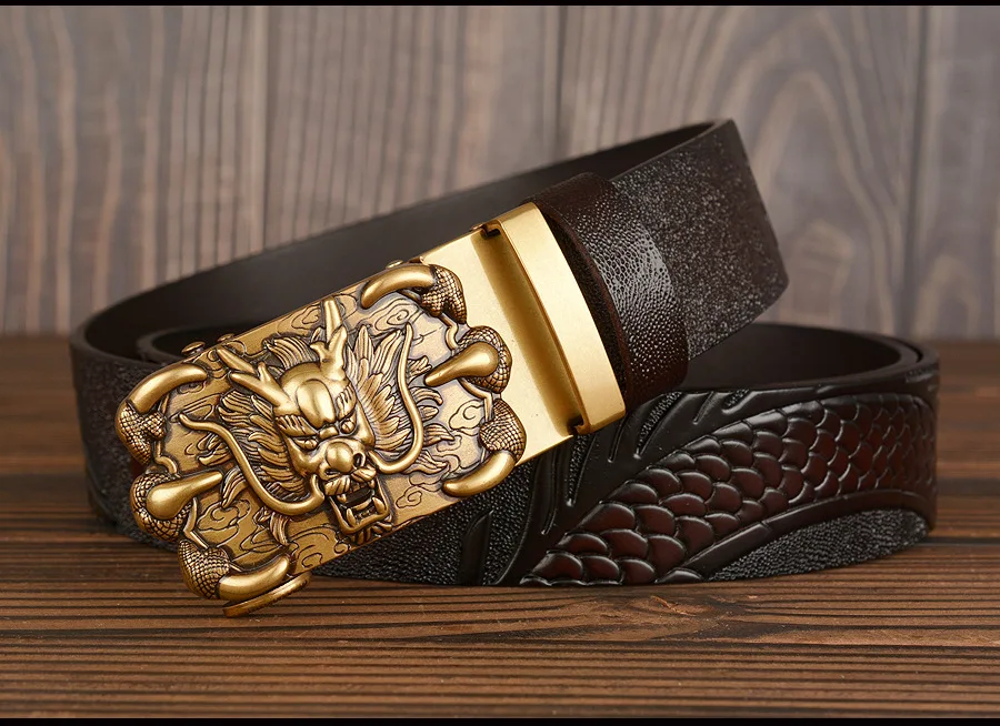3,5 см Ширина Ремень Натуральная Кожа Высокого Качества Воловьей Кожи Мужские Пояса Китайский Дракон Автоматическая Пряжка Ремни Ремни Для Мужчин Подарок