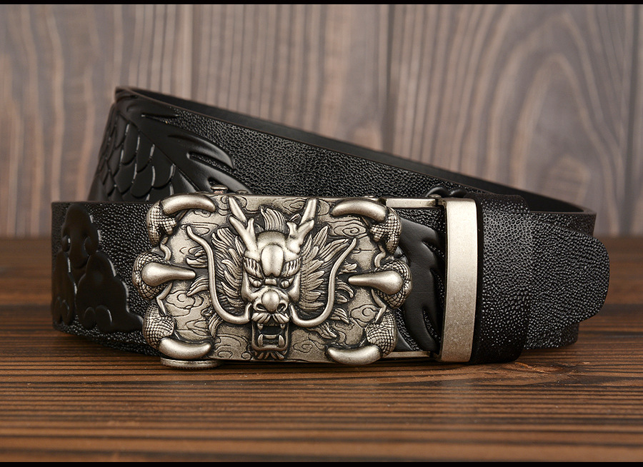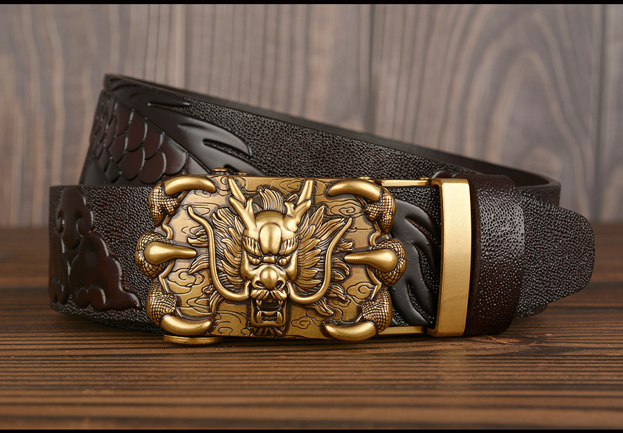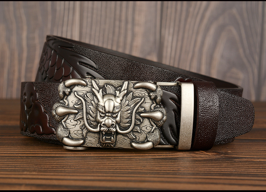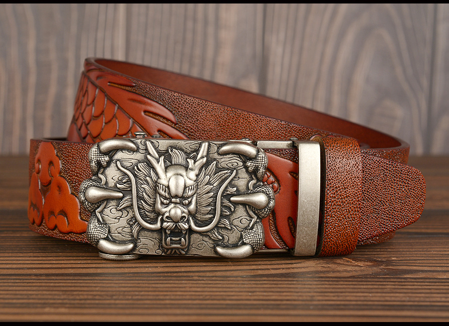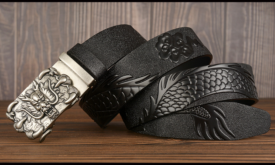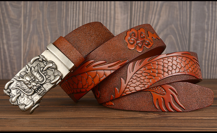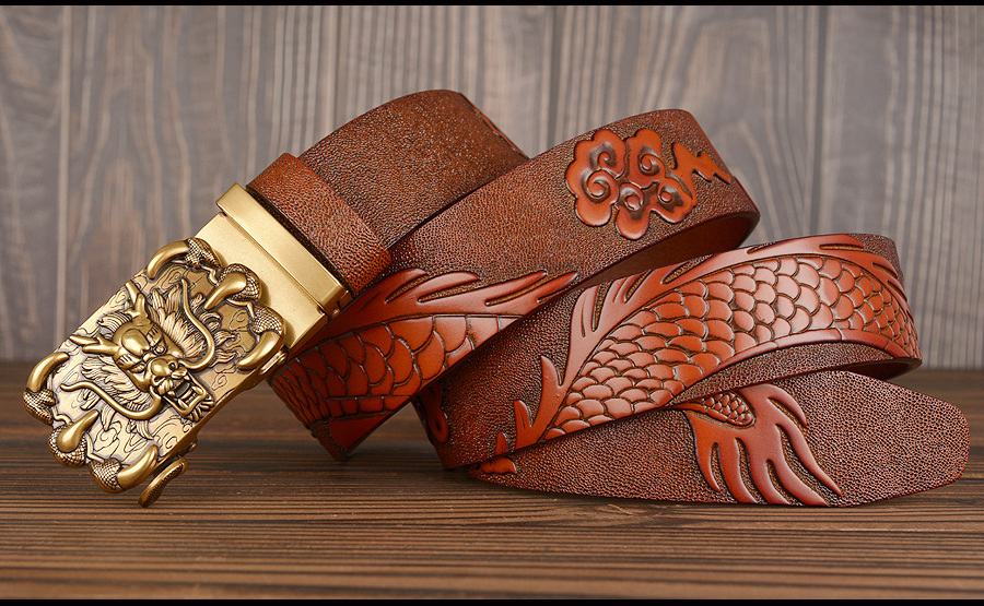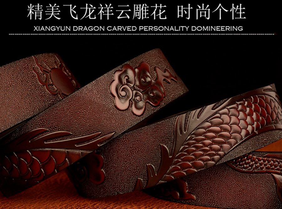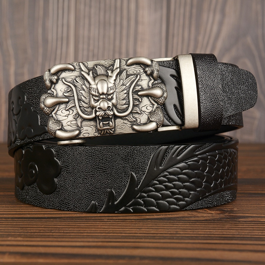 3,5 см Ширина Ремень Натуральная Кожа Высокого Качества Воловьей Кожи Мужские Пояса Китайский Дракон Автоматическая Пряжка Ремни Ремни Для Мужчин Подарок