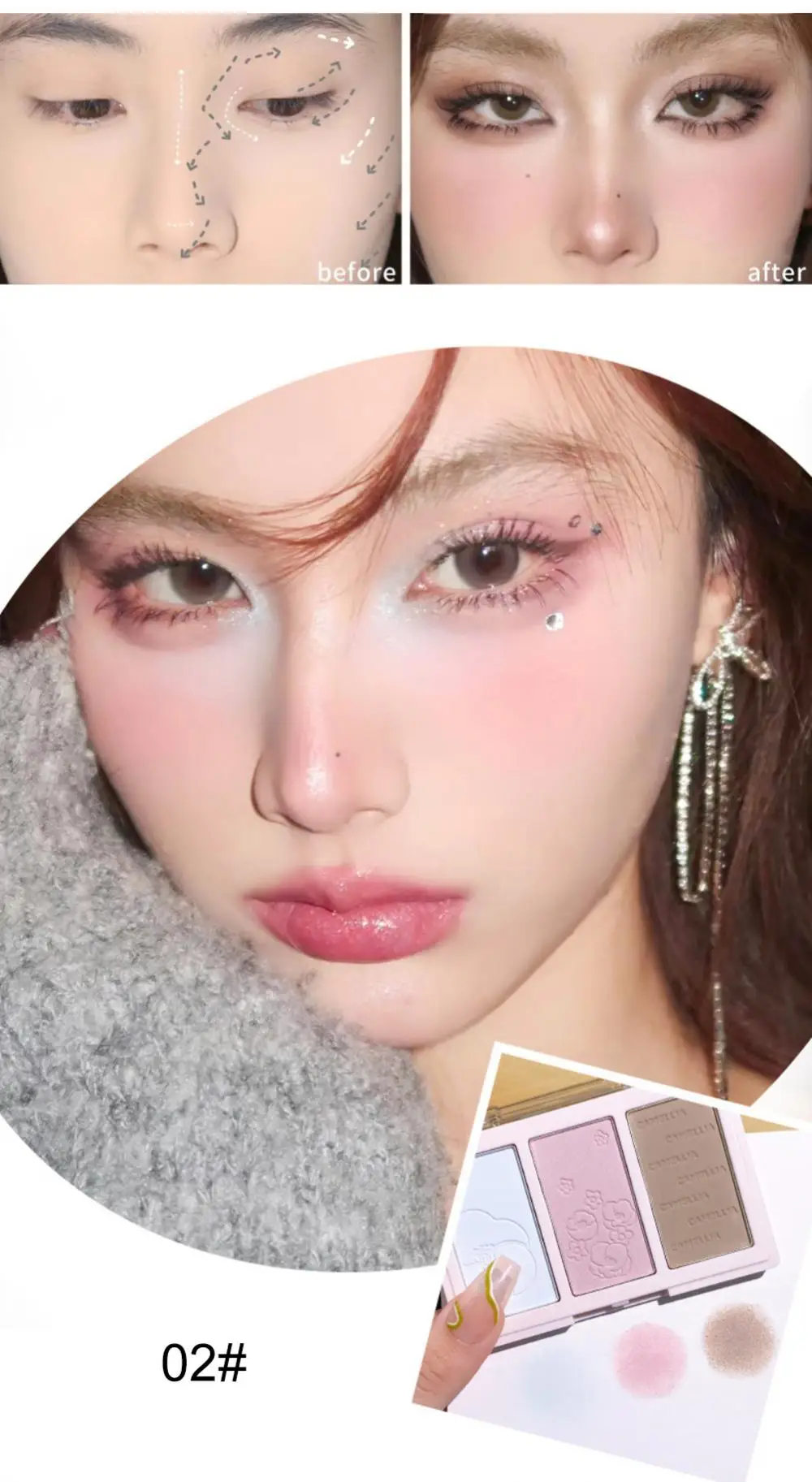 4. [Three styles] There are three different styles, one of which is a combination of highlight and contour, and the other two are a combination of blush and contour and a mix of blush, contour and highlight. You can choose according to your needs.