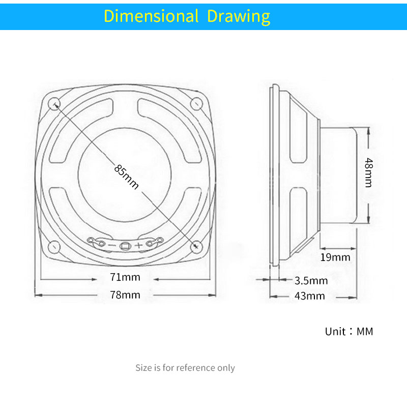 3-дюймовый Полнодиапазонный динамик UNISIAN, 3 дюйма, 4 Ом, 10 Вт, квадратный HIFI полночастотный Громкий динамик для домашней аудиосистемы усилителя