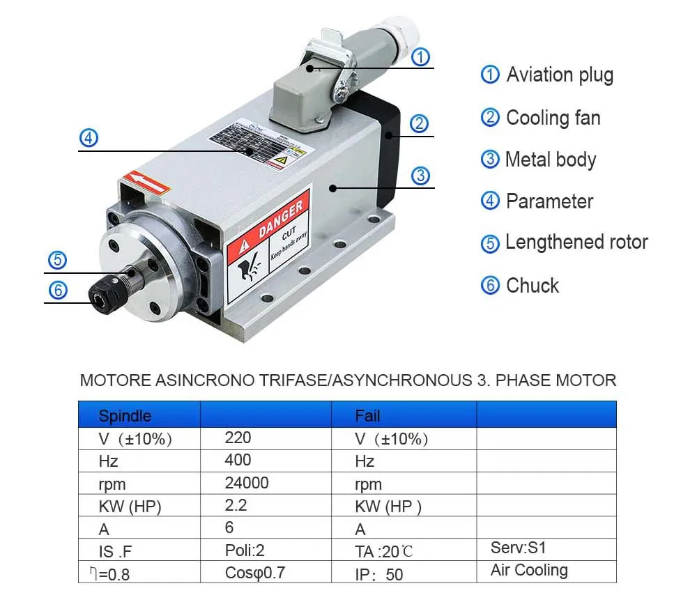 3-фазный входной электродвигатель шпинделя с воздушным охлаждением, 24000 кВт/400 кВт, об/мин, Гц + 1 Комплект цанг ER11 или ER20 для станка с ЧПУ