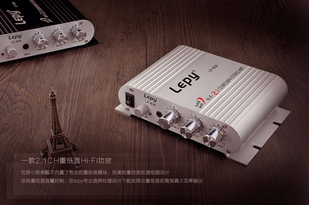 3-канальный стереоусилитель Lepy Lp-100%, 838, 2,1, 3,5 мм