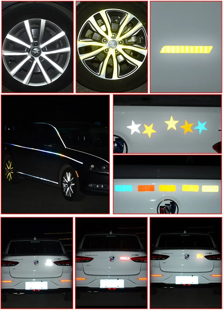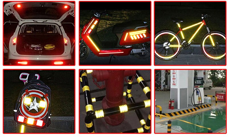 4. Применение: наклейки-отражатели можно наклеивать на одежду, шлемы, рюкзаки, подходят для различных транспортных средств, таких как автомобили, велосипеды, прицепы, мотоциклы, внедорожники, грузовики и т. Д., А также подходят для дорожных знаков, стены, лестницы, ступени, почтовые ящики и т. д. для достижения цели предупреждения о поражении