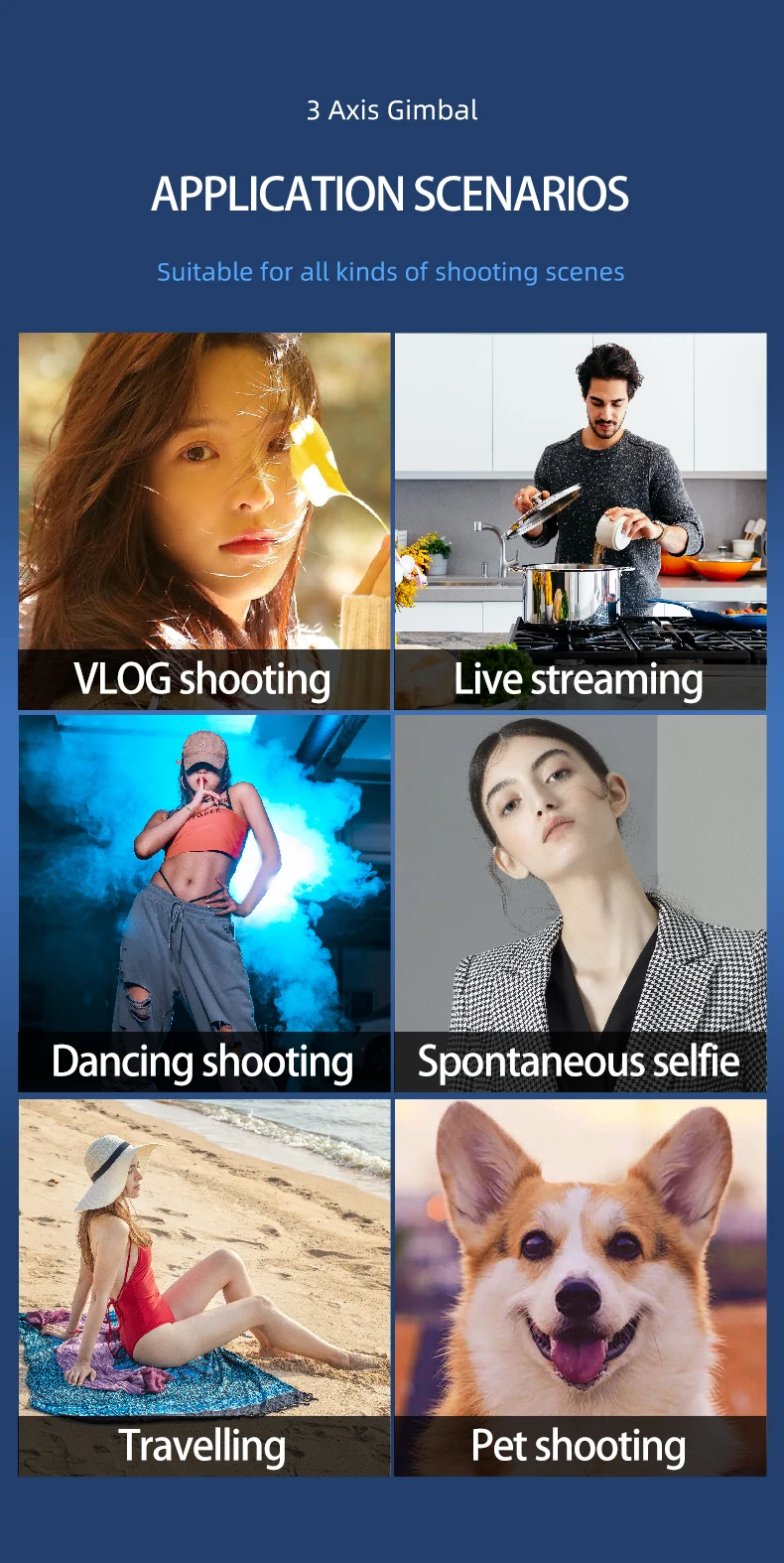 Все 3 оси заблокированы, все 3 оси следующие, 4 режима работы, охватывает большинство сценариев приложений съемки