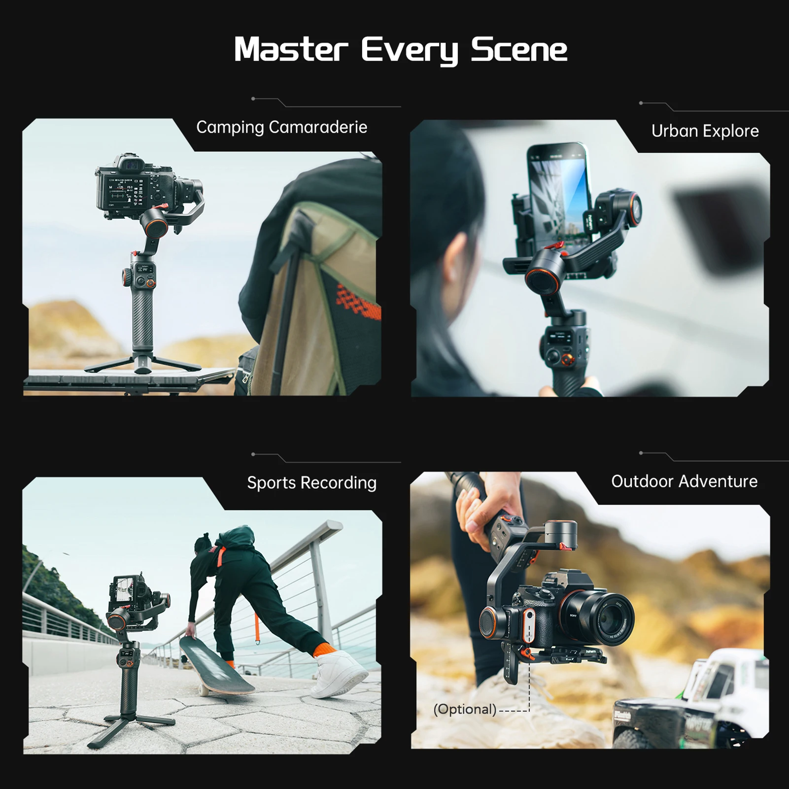 【Стабилизатор】Поддерживает полезную нагрузку до 1,2 кг, совместим со смартфоном, экшн-камерой, компактной камерой и некоторыми полнокадровыми беззеркальными камерами в сочетании с объективами.