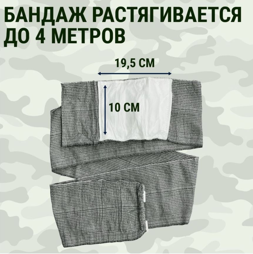 Проверенное в боях средство первой помощи, основанное на особой конструкции этой цельной повязки, пострадавший может самостоятельно спастись одной рукой.