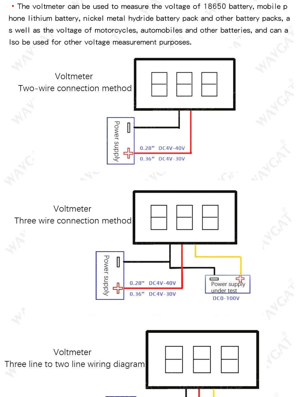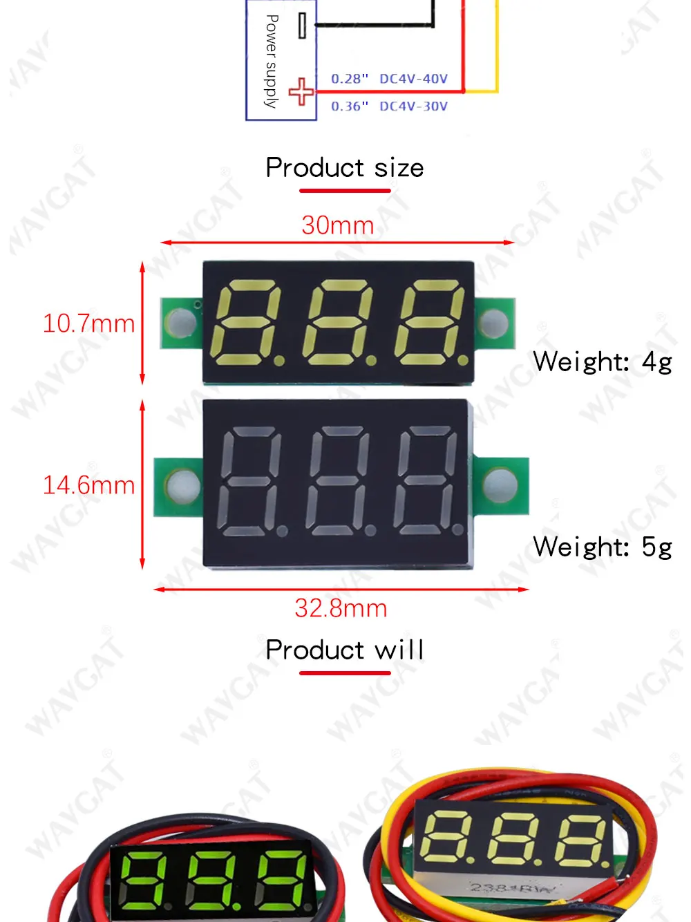 3-проводной мини-измеритель напряжения, 0,28 дюйма, постоянный ток 0-100 в, вольтметр, дисплей, цифровая панель, вольтметр, измеритель, детектор, монитор, инструменты