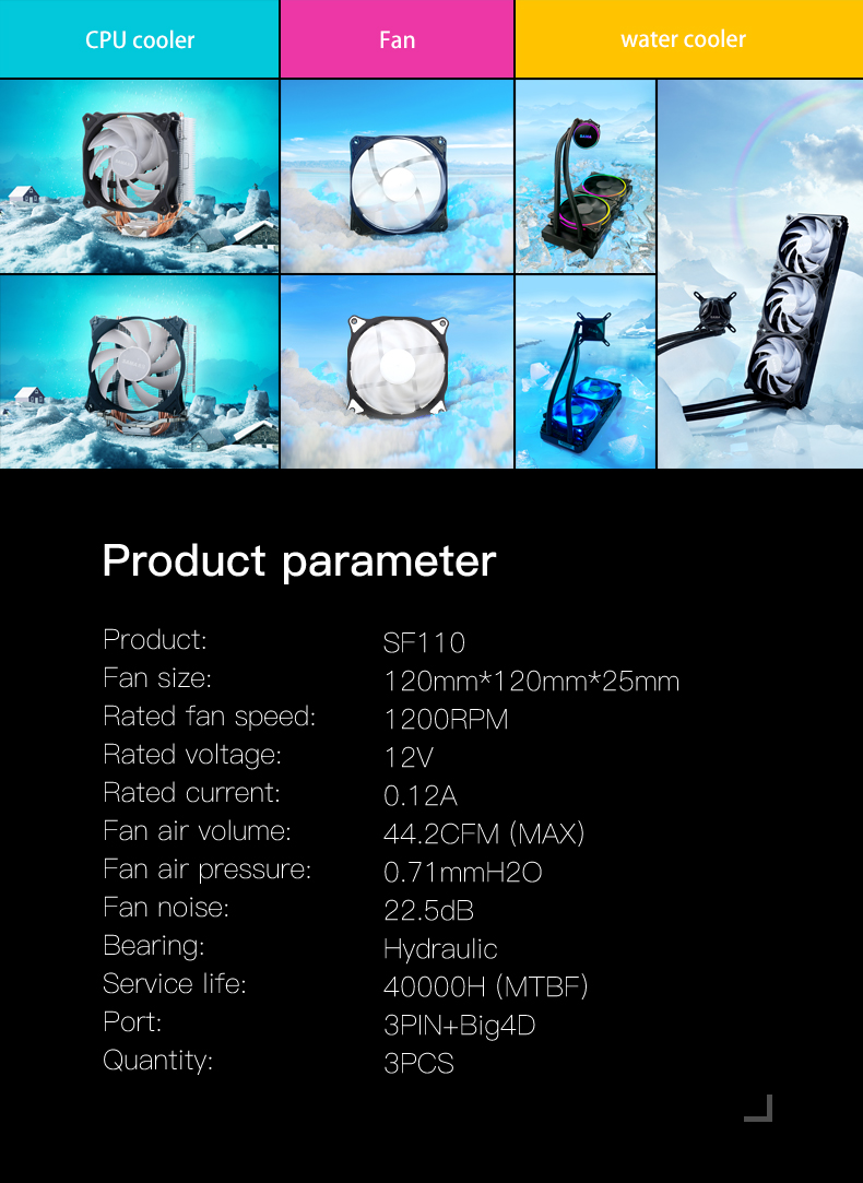 3 шт., бесшумные кулеры SAMA, 3 контакта, 120 мм, 1200 об./мин., 12 В