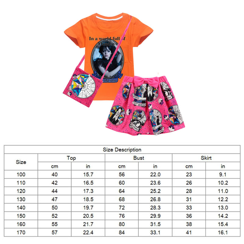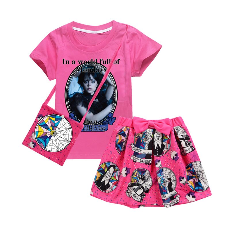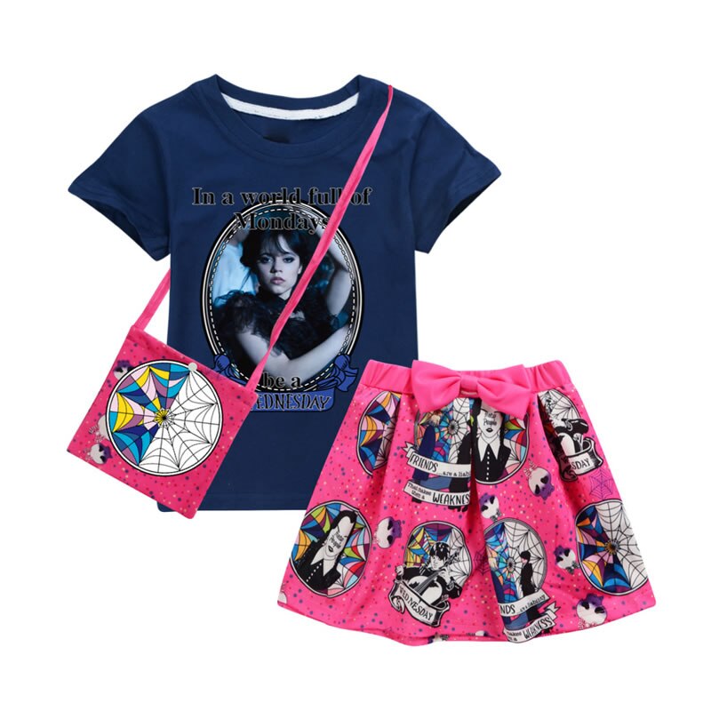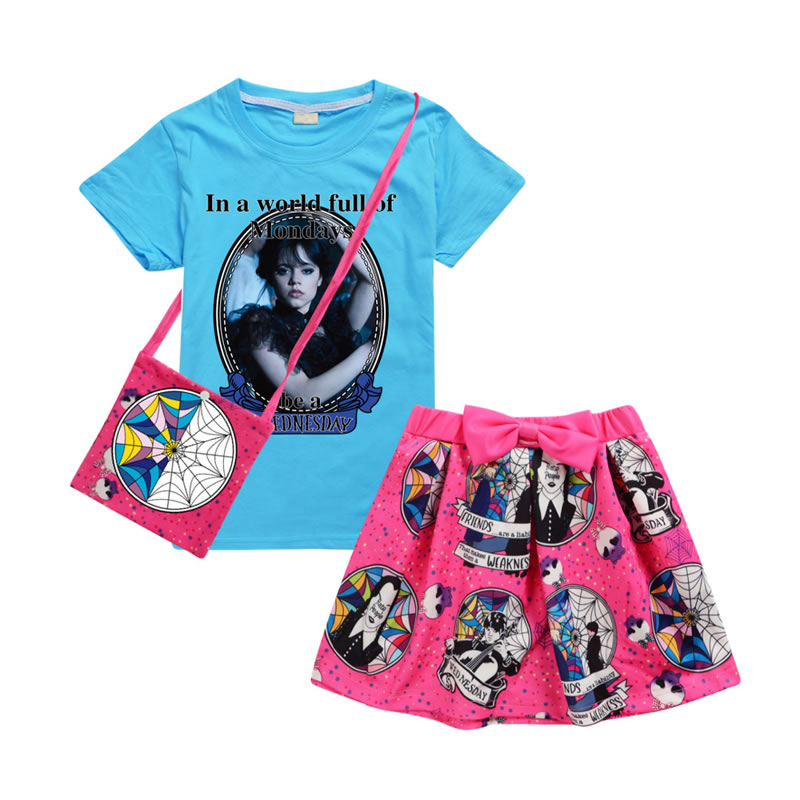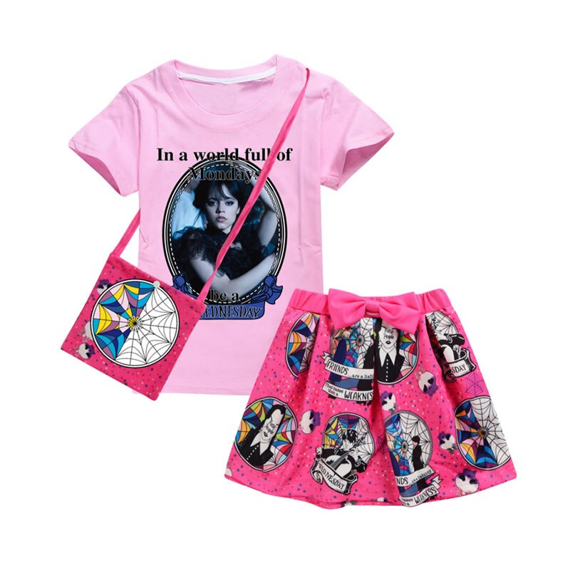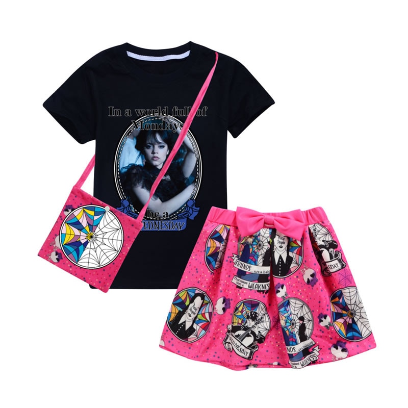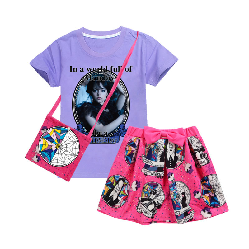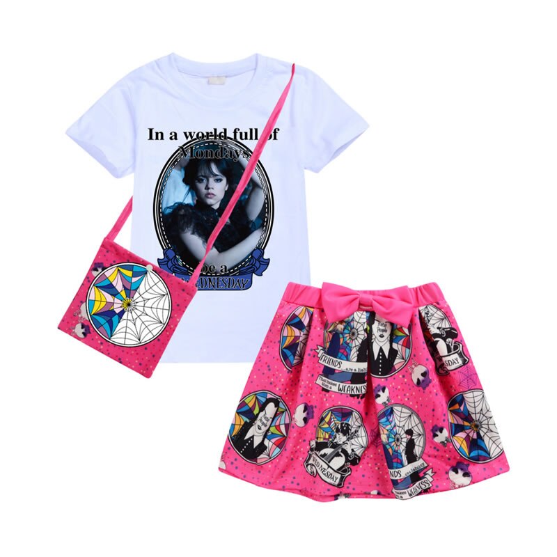 3 шт., детские футболки с принтом, юбка с бантом и сумка