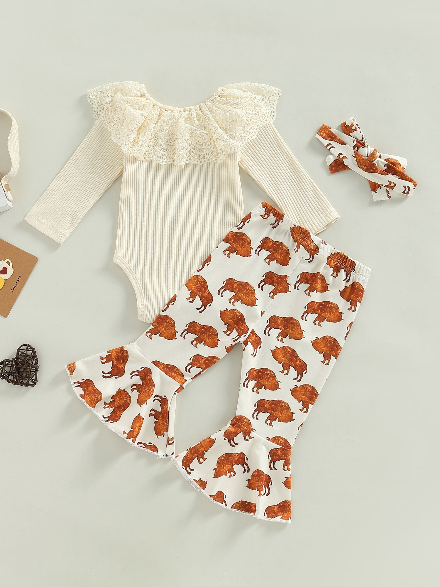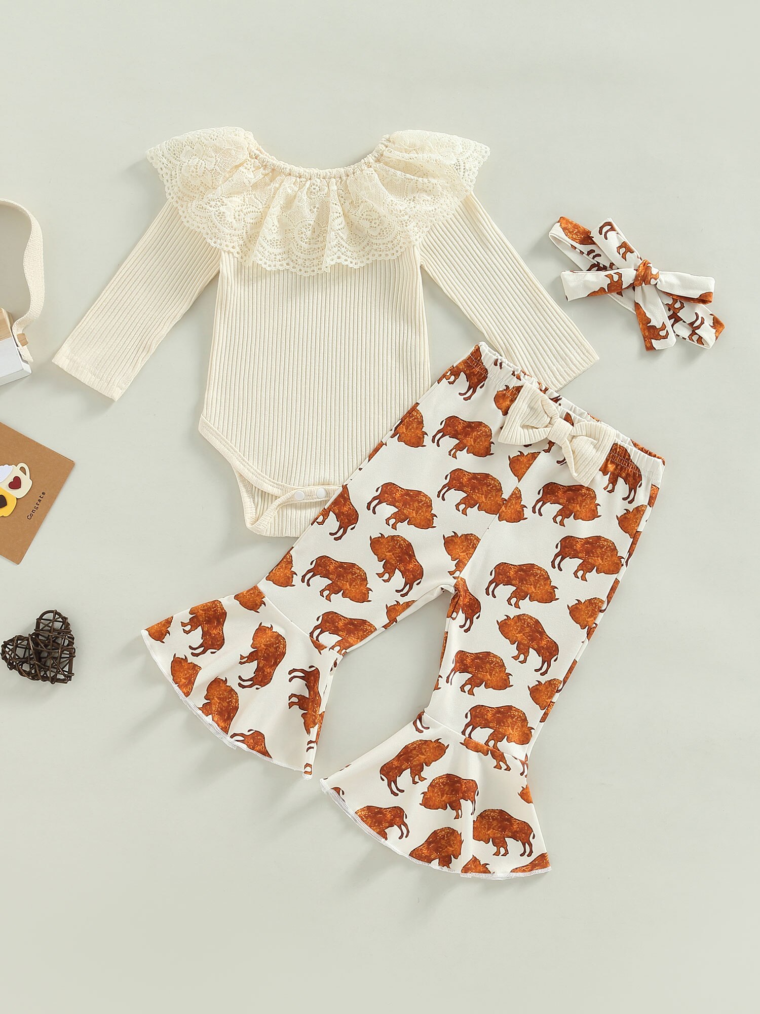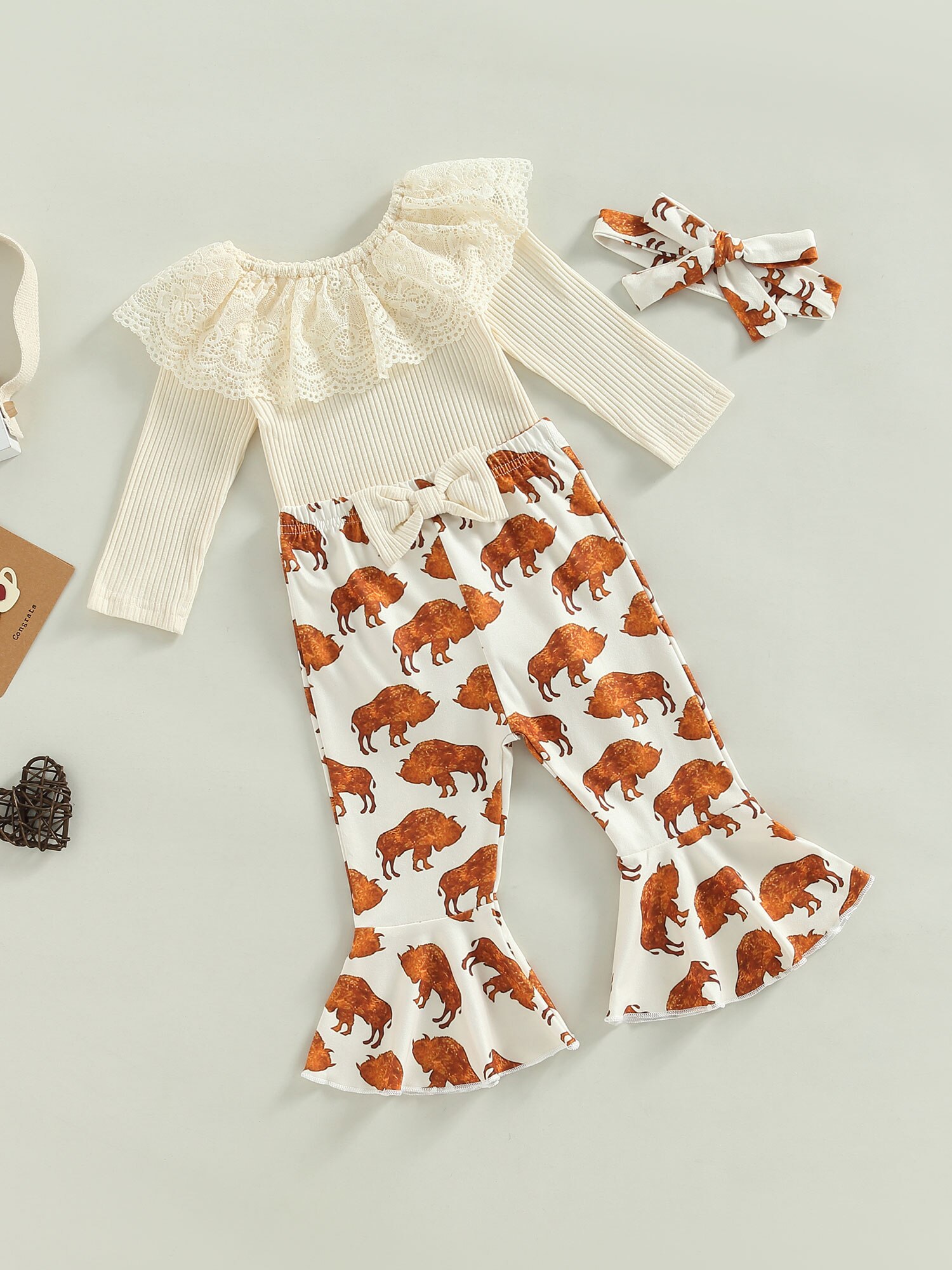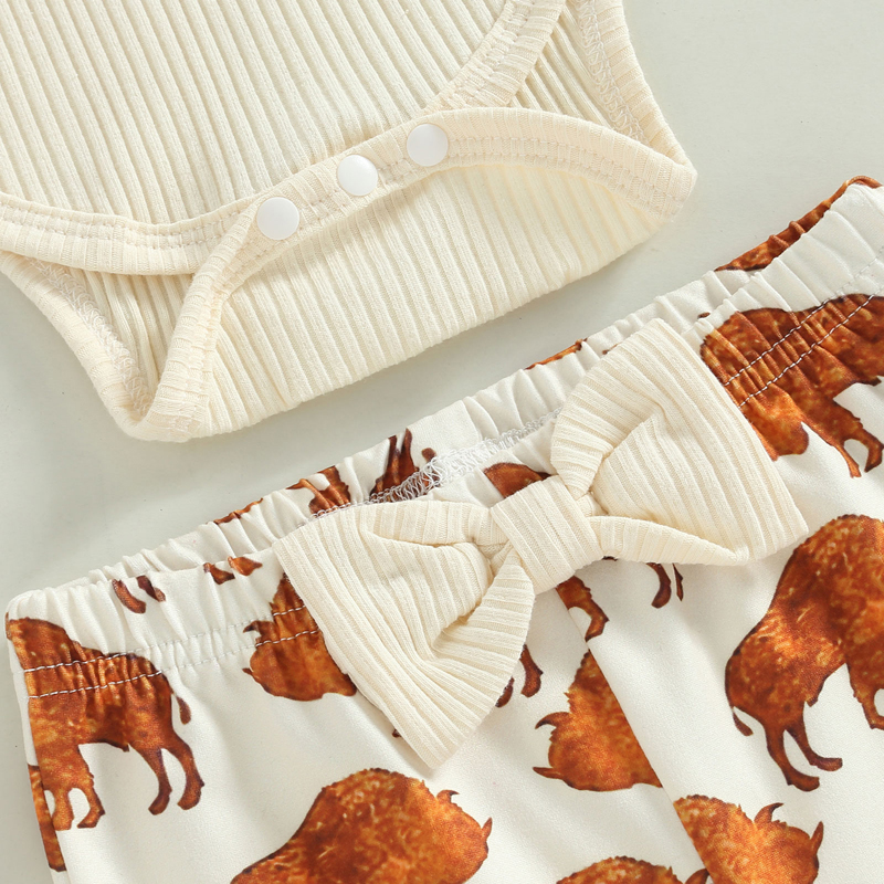 Узор: однотонные топы, брюки с принтом быка
