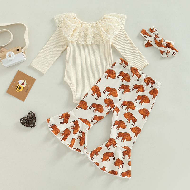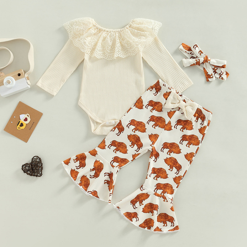 3 шт., Детский комбинезон с длинным рукавом и цветочным принтом