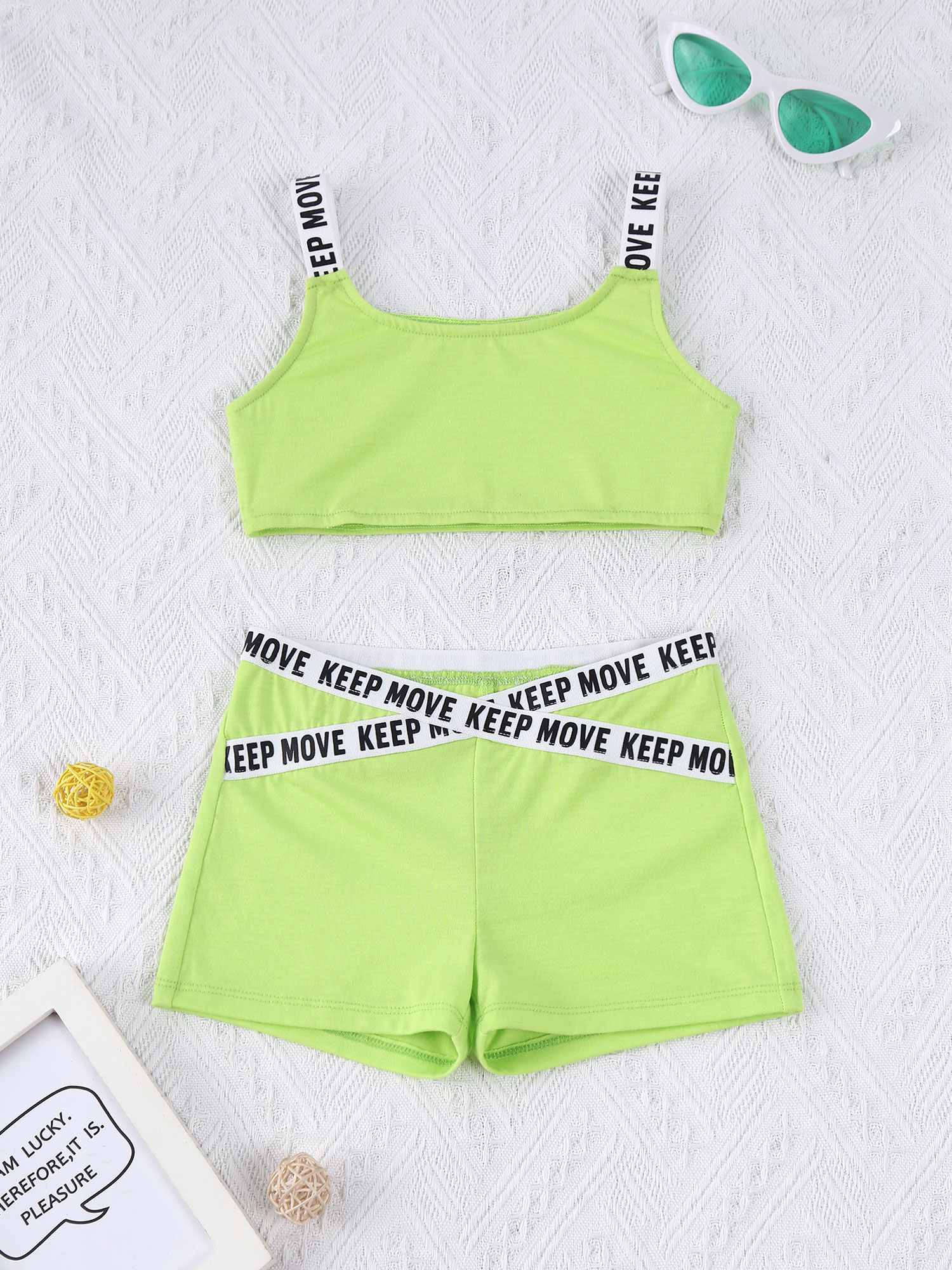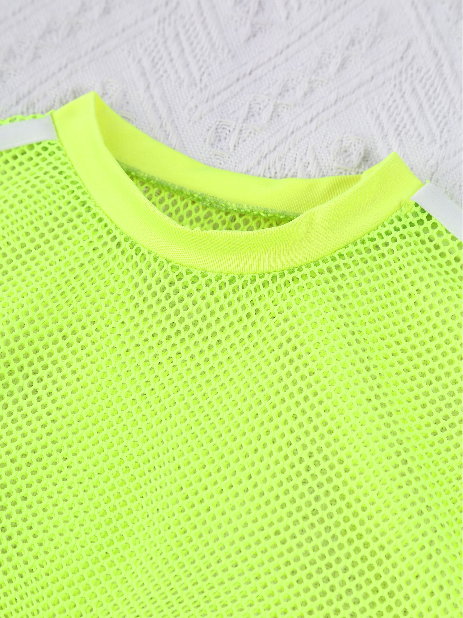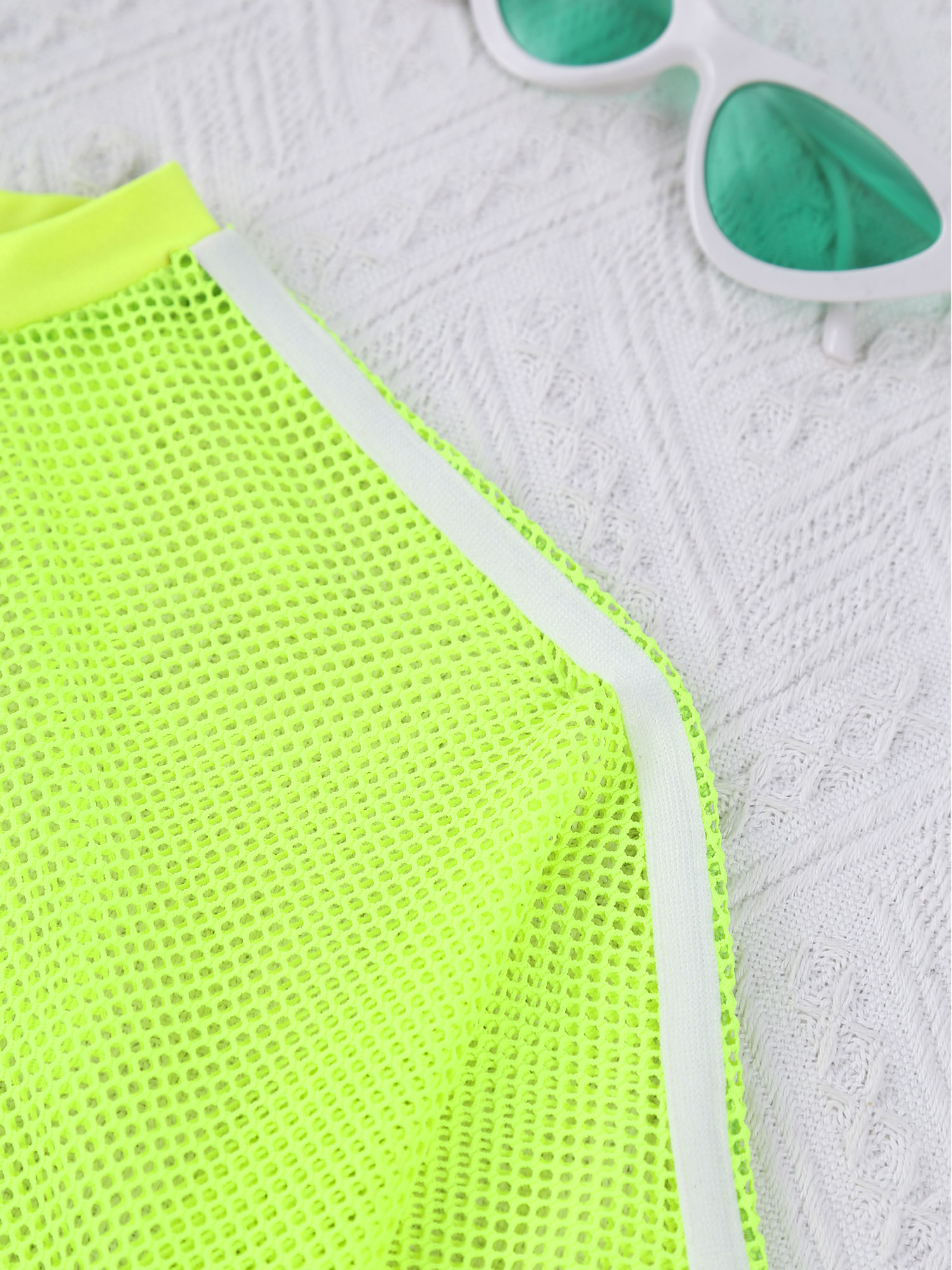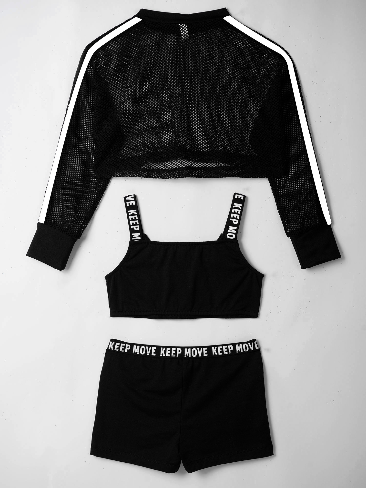 Укороченный жилет для девочек на ремешках из 3 предметов с выдолбленными дышащими сетчатыми накидками, топами и шортами.