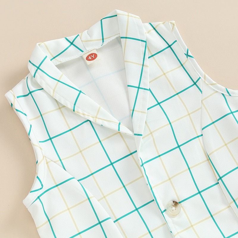 3 шт., клетчатый жилет с отложным воротником и шорты с эластичной талией