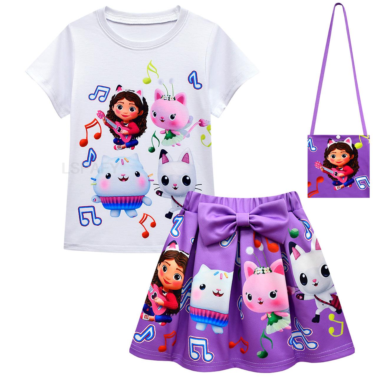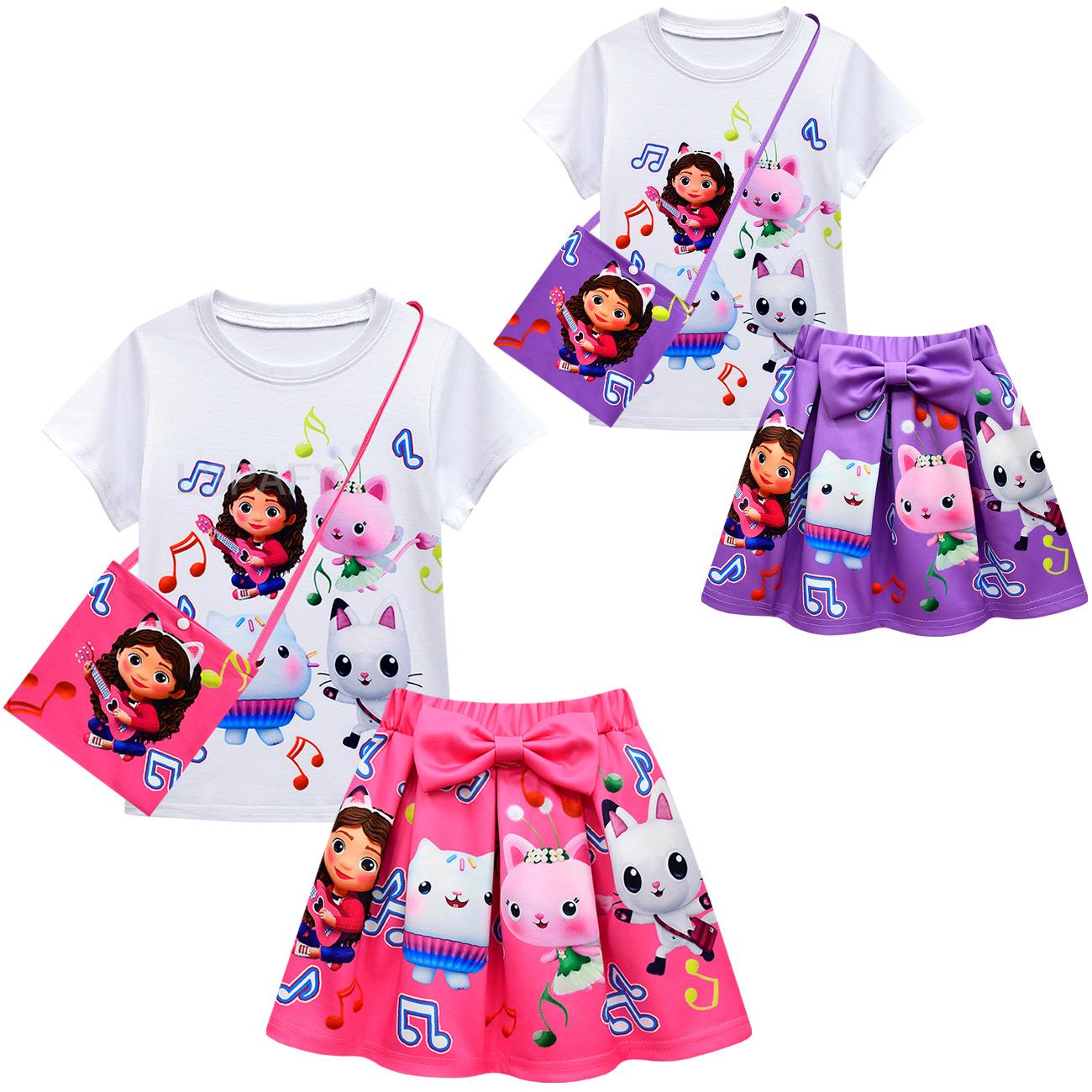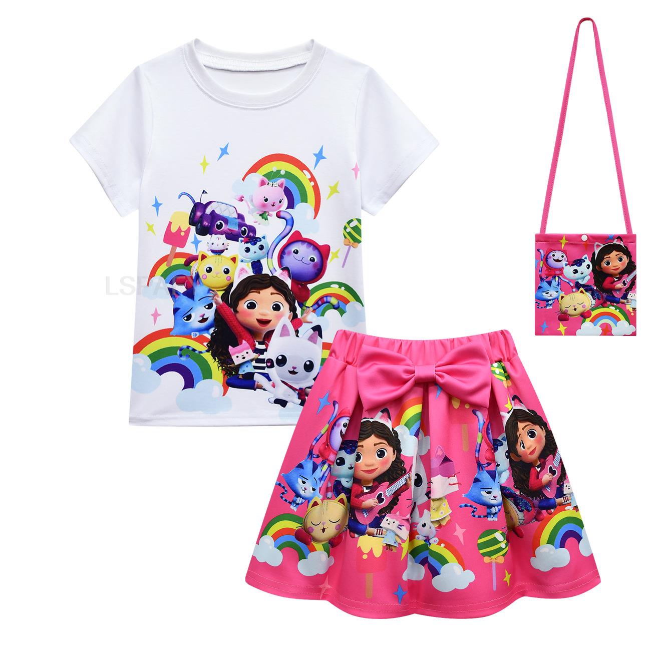 3 шт./комплект, футболка и юбка с бантом для девочек
