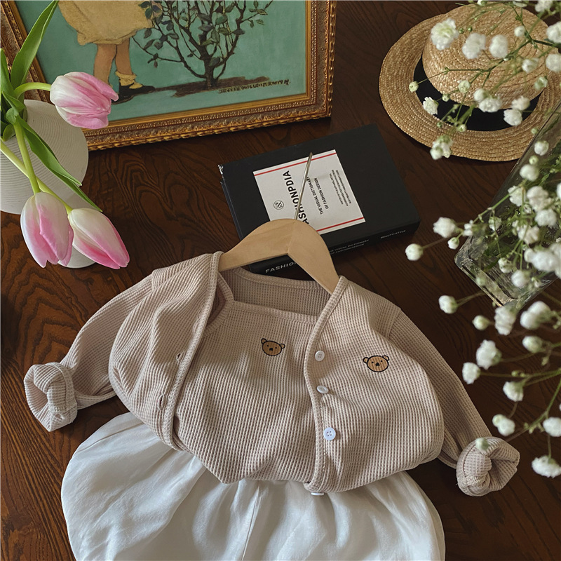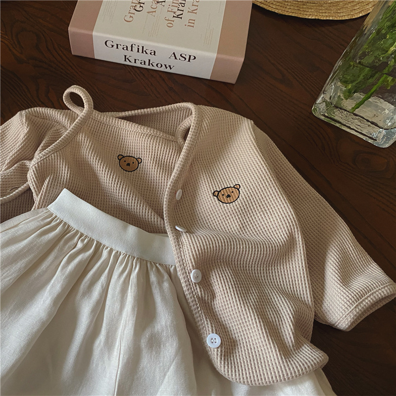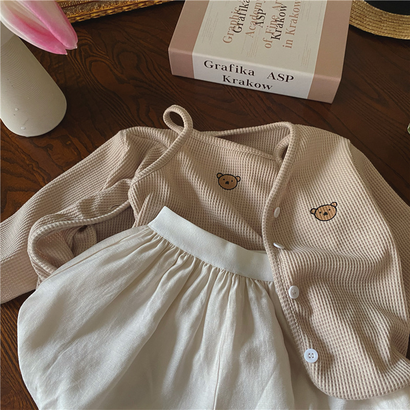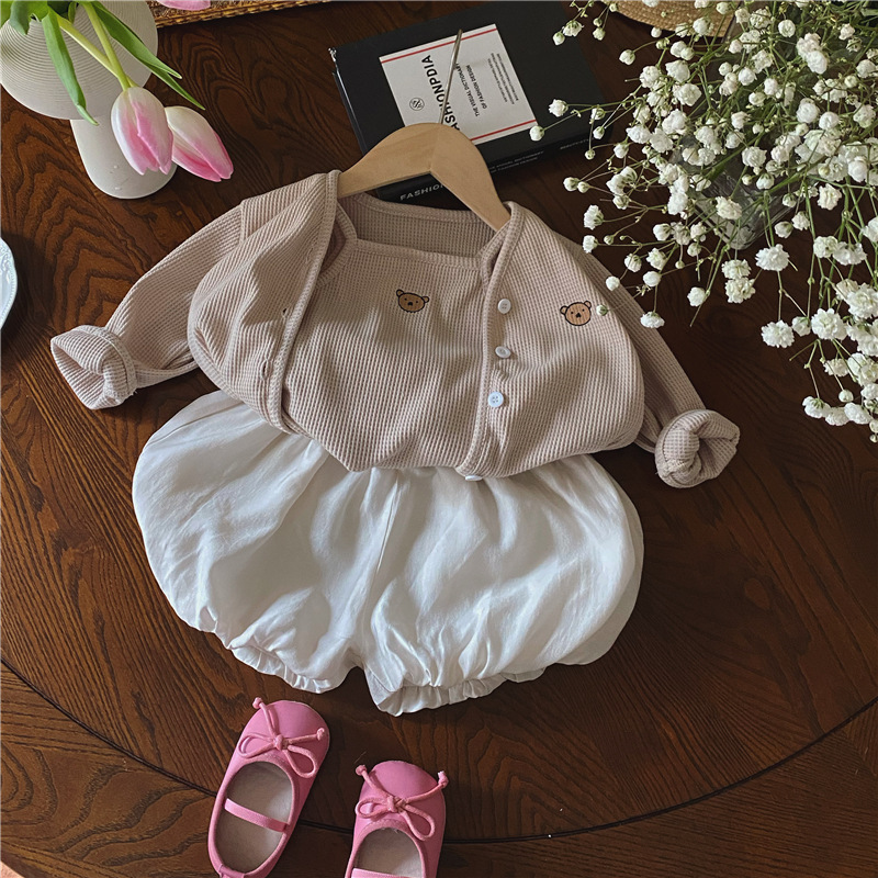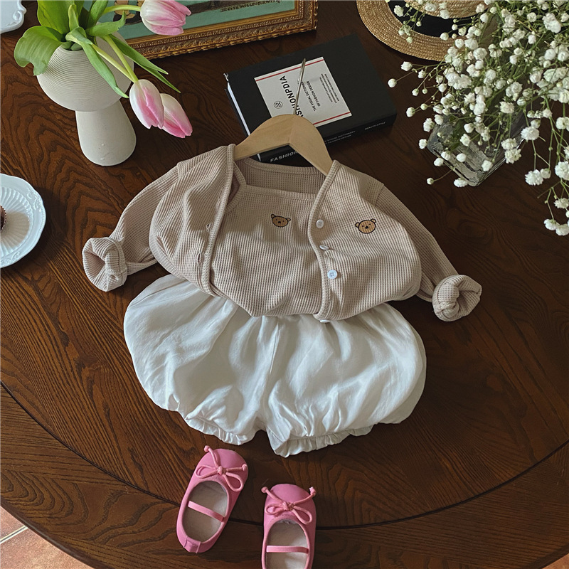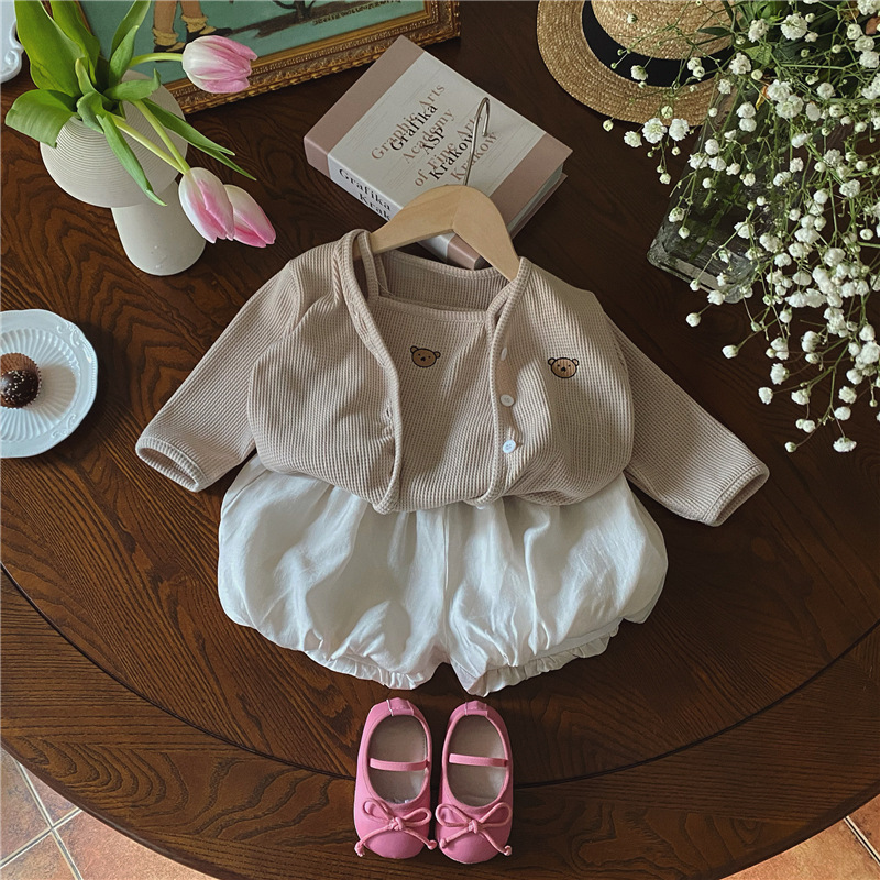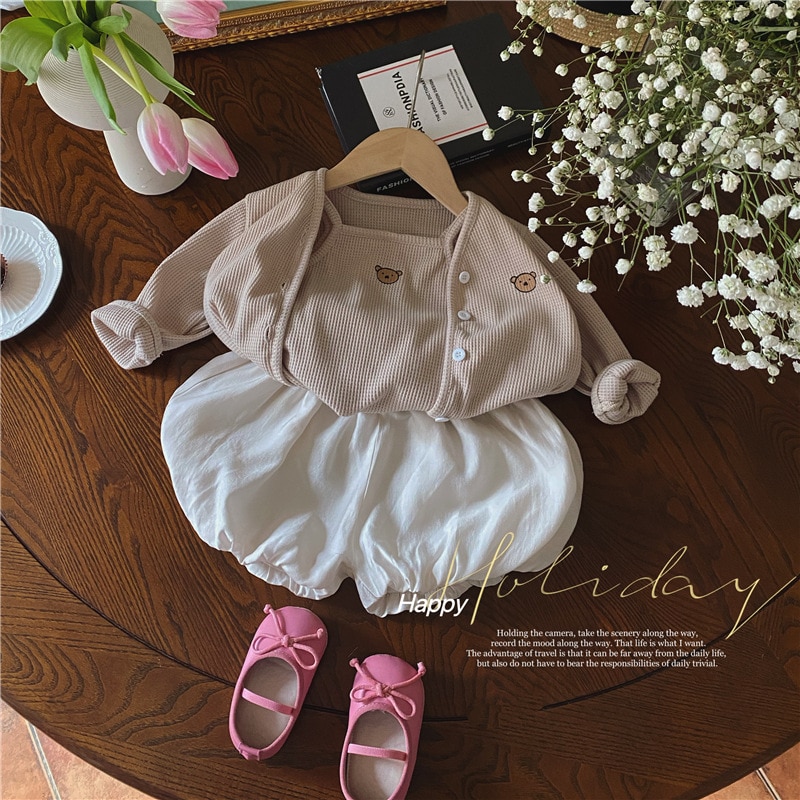 3 шт./комплект, хлопковый кардиган с жилетом и шортами для девочек