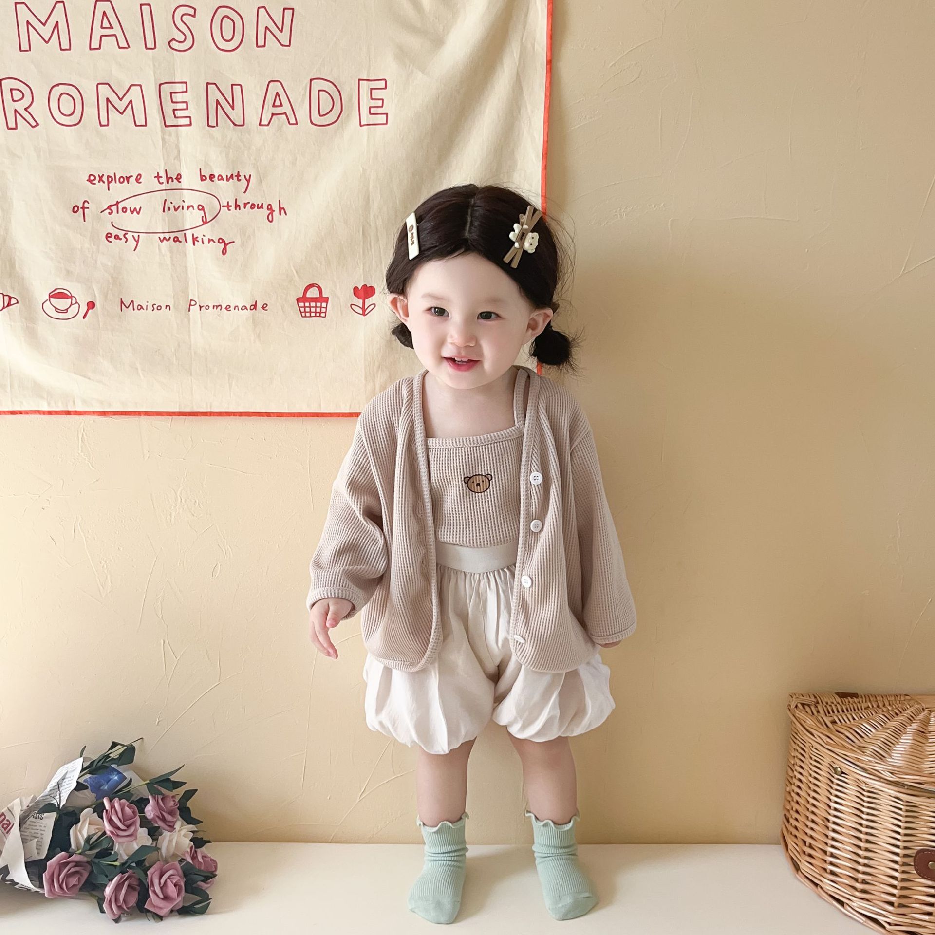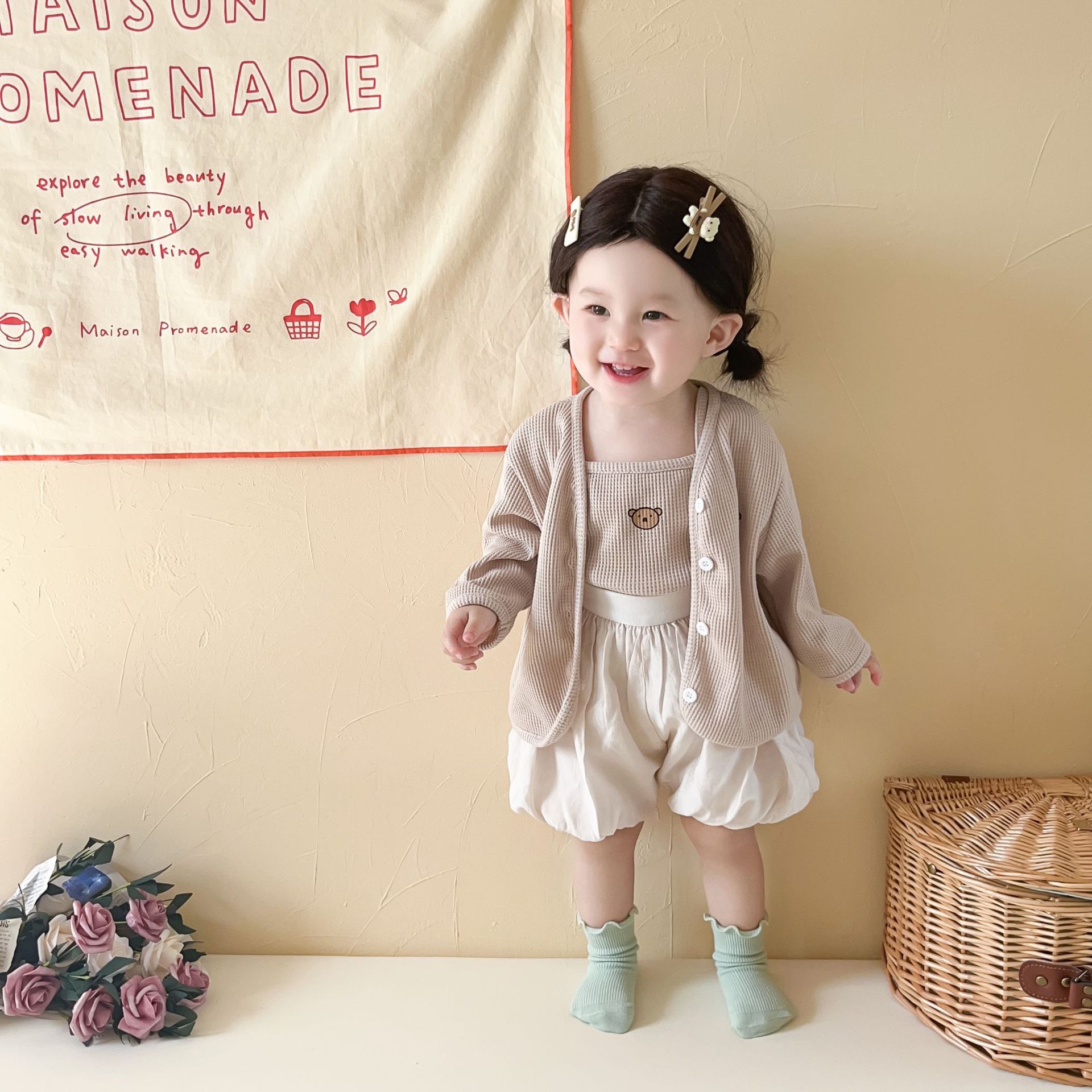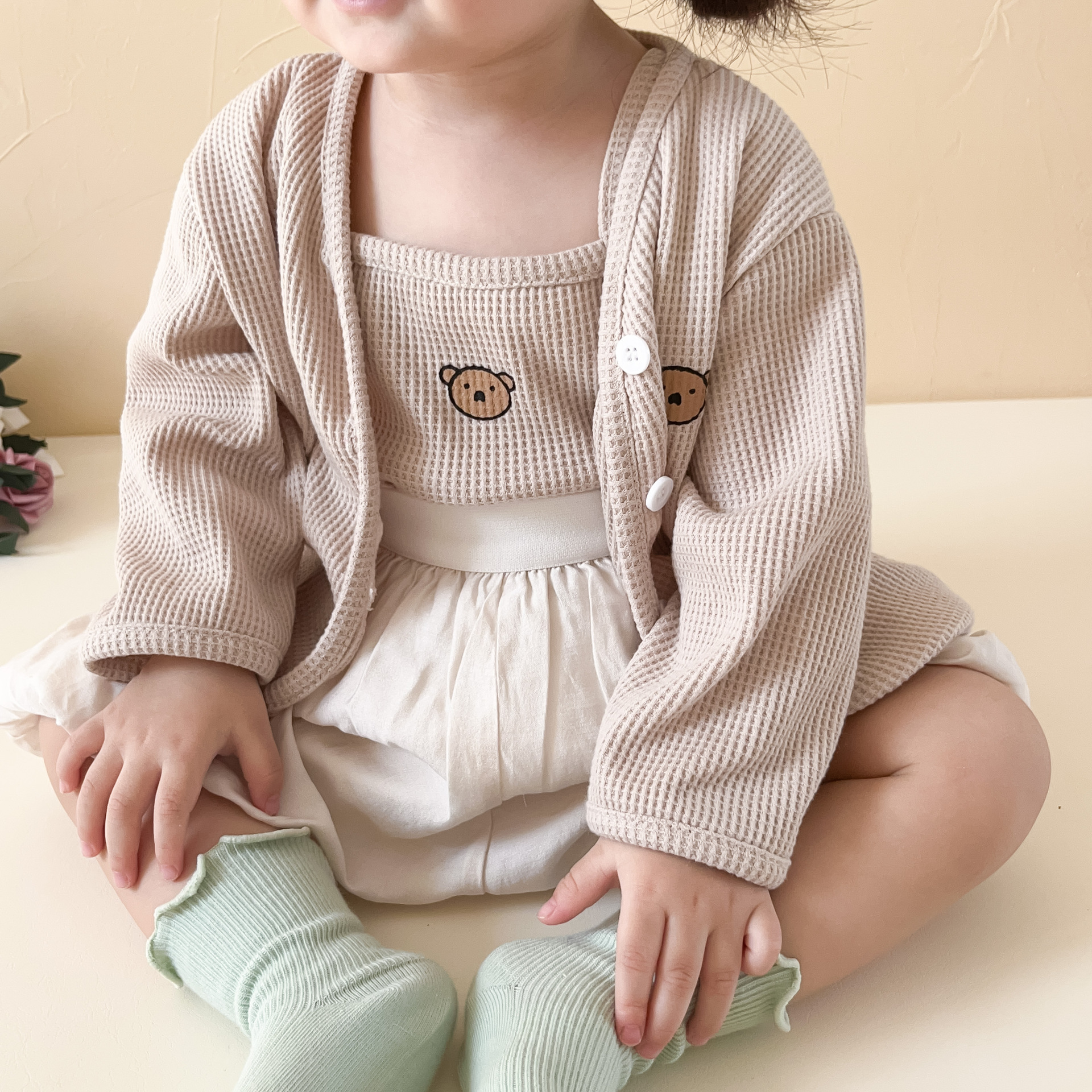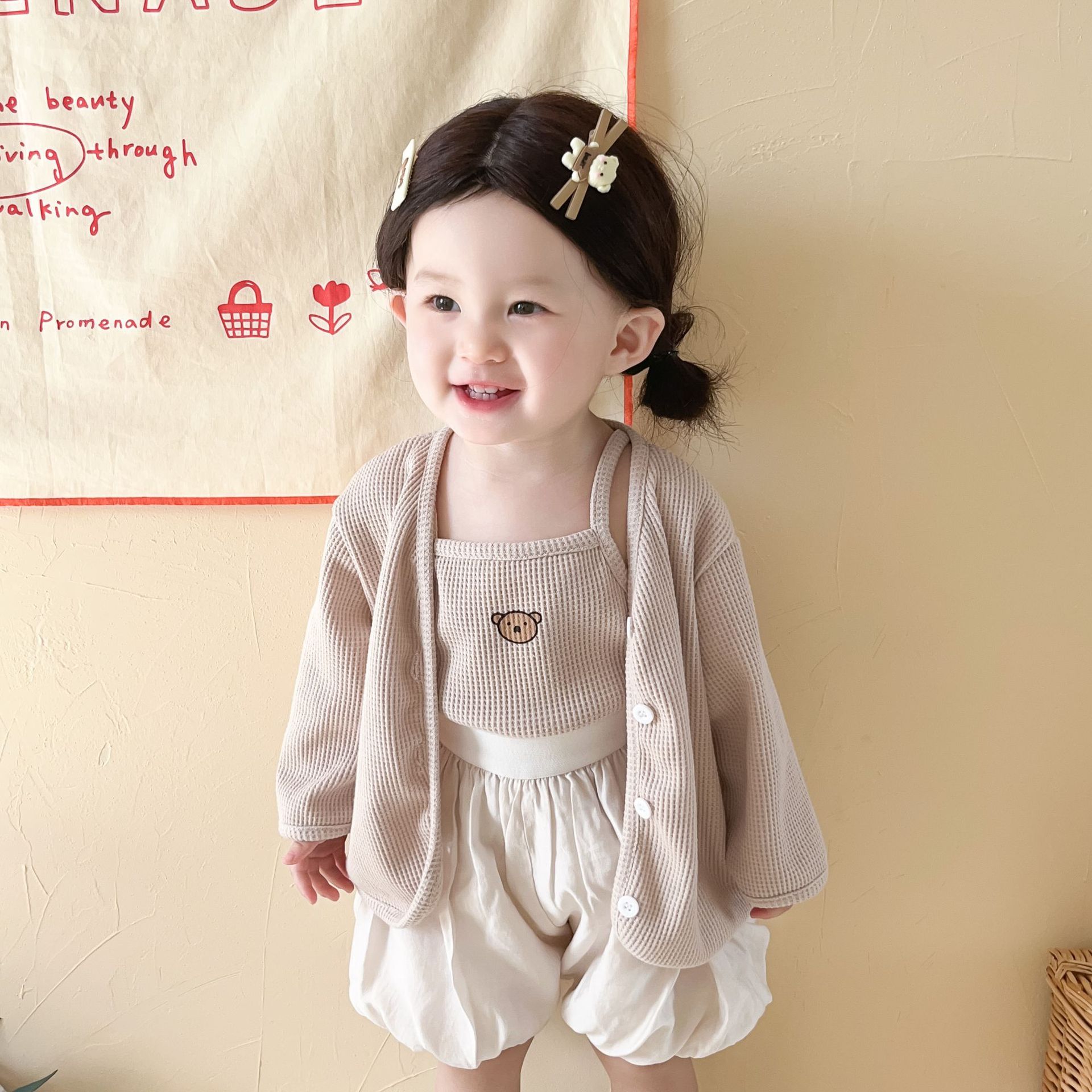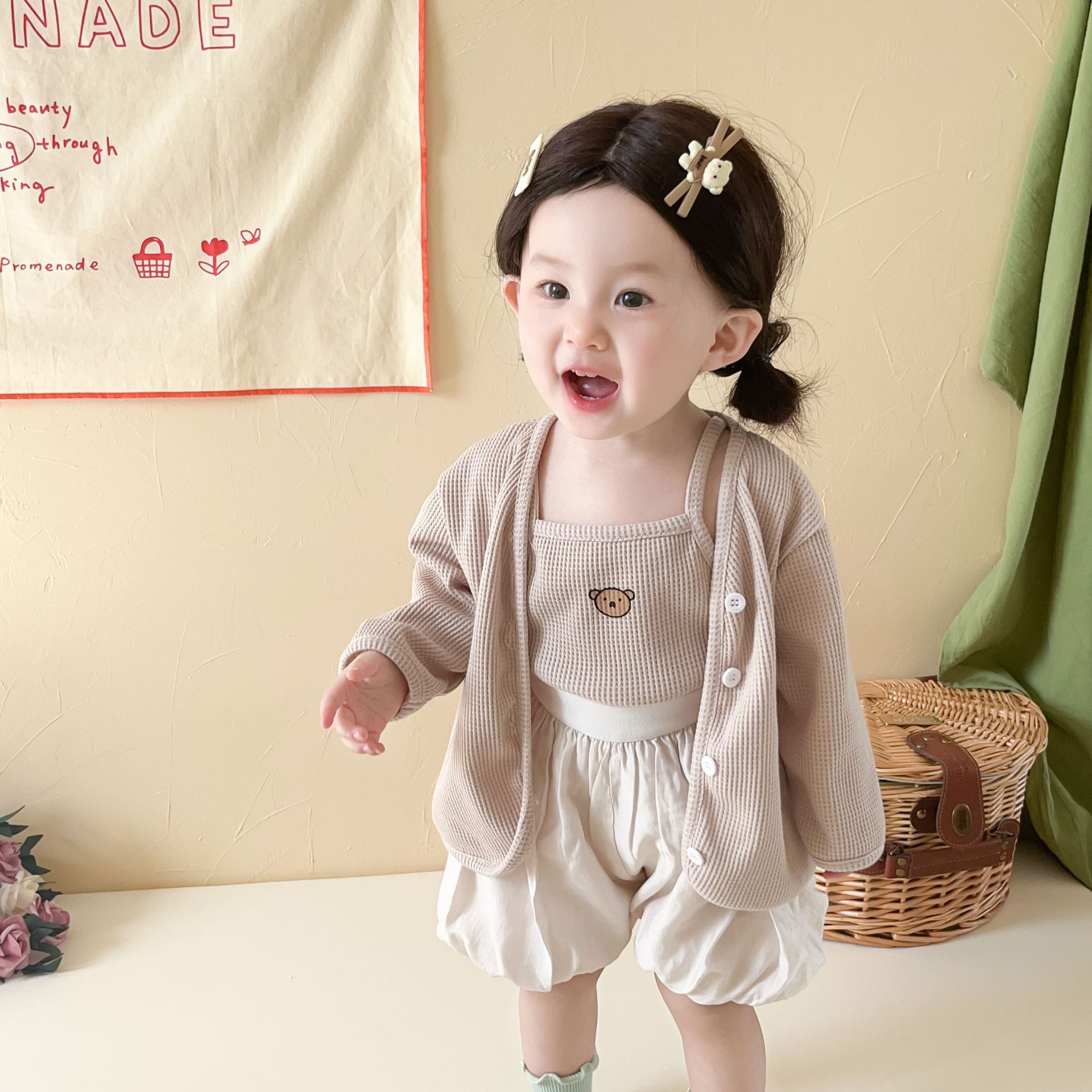 3 шт./комплект, хлопковый кардиган с жилетом и шортами для девочек