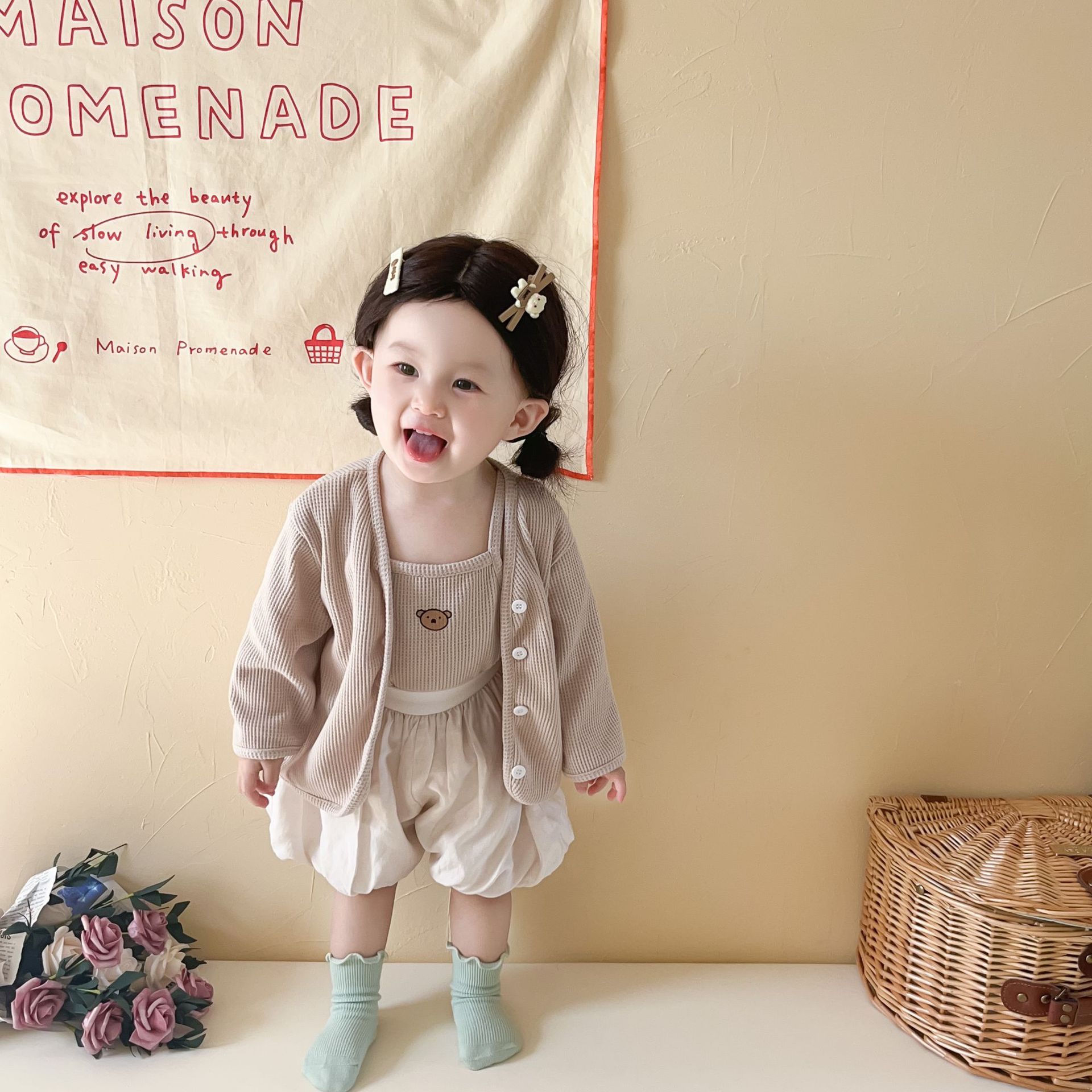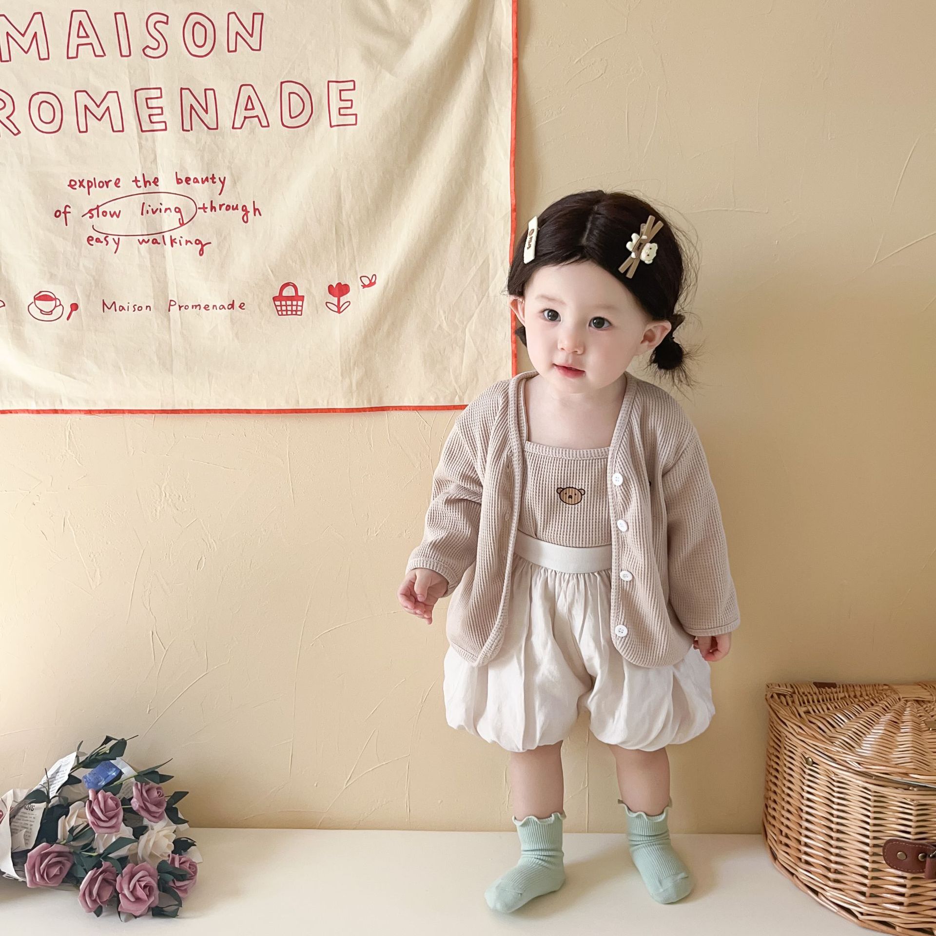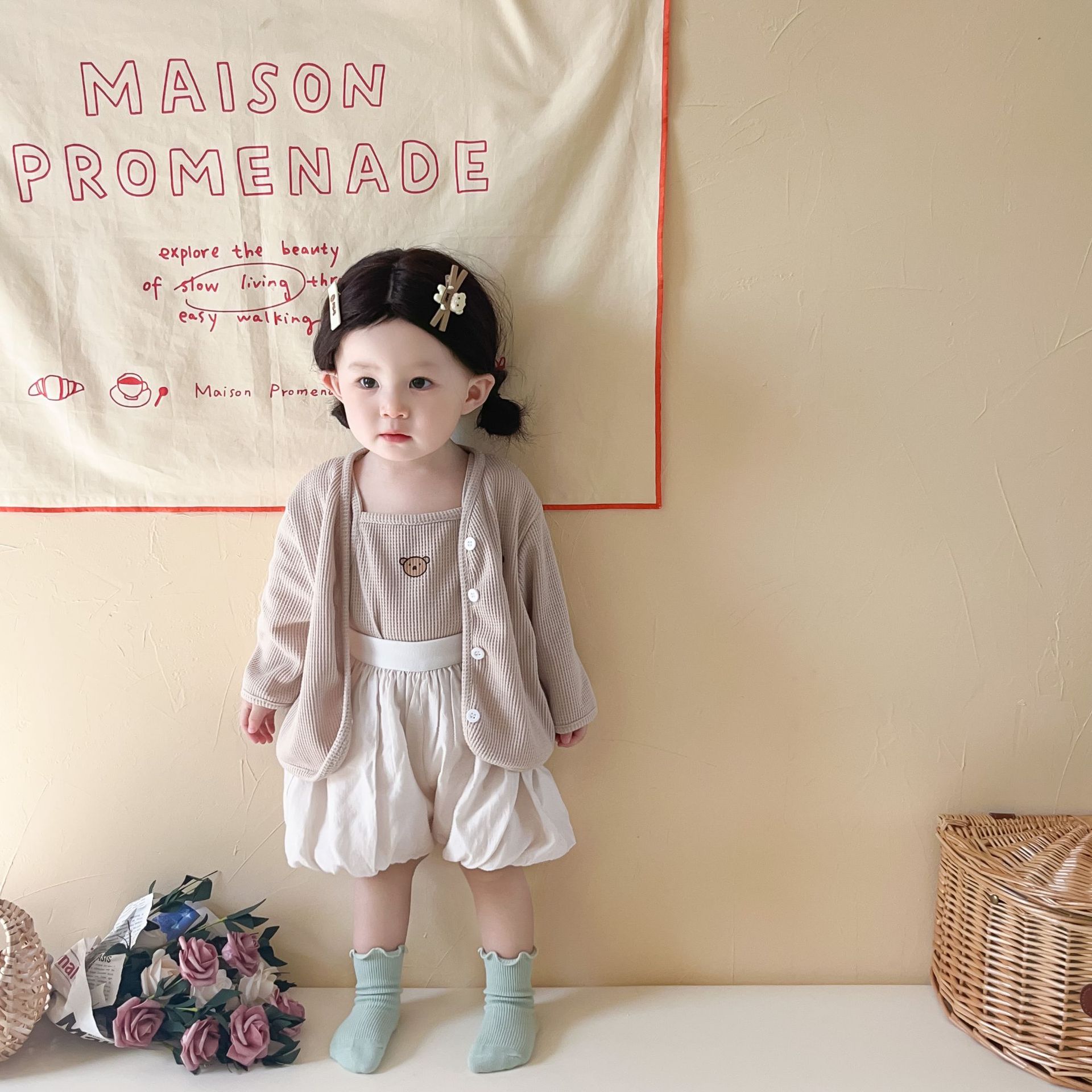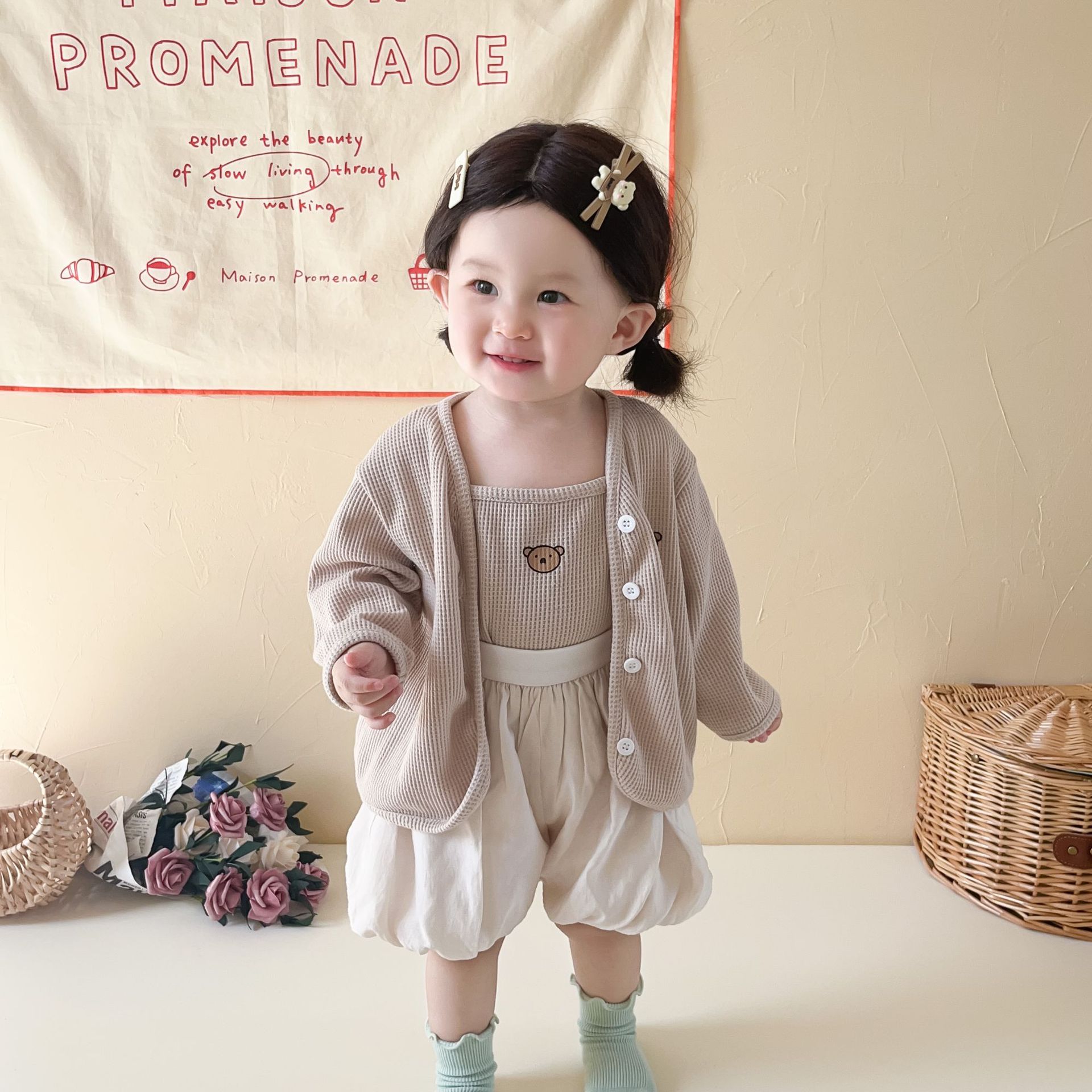 3 шт./комплект, хлопковый кардиган с жилетом и шортами для девочек